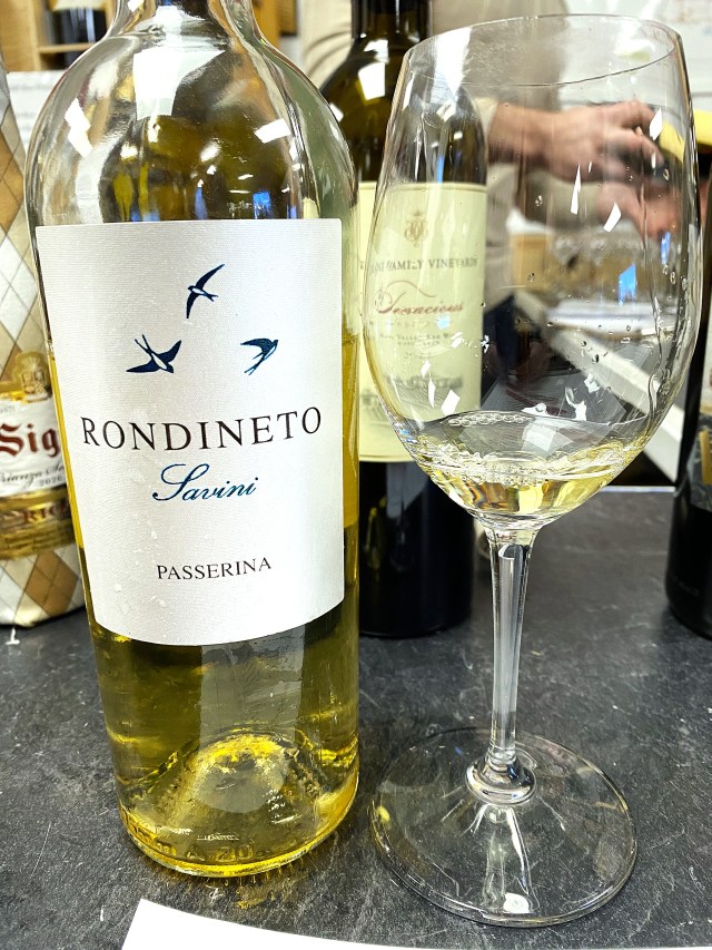 Our next wine was Fattoria Giuseppe Savini Rondineto Passerina Colli Aprutini IGT 2021. The winery was founded in 1949 by Giuseppe Savini, and it is still in the family today. Colli Aprutini IGT used in the Abruzzo region of central Italy. The designation was created in 1995 and allows all types of wines to be produced, though the majority tend to be dry table wines. Passerina is considered an ancient and traditional grape variety used in the white wines of the Marche region of central Italy. The grape reacts differently according to the terroir, and some have opined that it can be different grapes lumped together over the years. Passera means sparrow, which is makes sense, as the sparrows enjoy this grape, and the “ina” suffix was probably added on, because the grapes are smaller in size, even when mature. The grape is also known as Uva Passera, Campolese, Trebbiano di Teramo and Pagadebit. This wine was Estate grown of pure Passerina in the province of Teramo in the Abruzzo region on clay soil. After a soft pressing, the Initial Fermentation took place in temperature controlled Stainless-Steel tanks for about twelve days, then racked and bottled, with a short refinement in the bottle before release. The straw-yellow-colored wine offered notes of peach, pear, citrus, white florals and spices. On the palate this light-bodied, well-balanced wine displayed tones of subtle tree-fruit and spices, with lively acidity and ending with a finish of soft fruit and minerality.