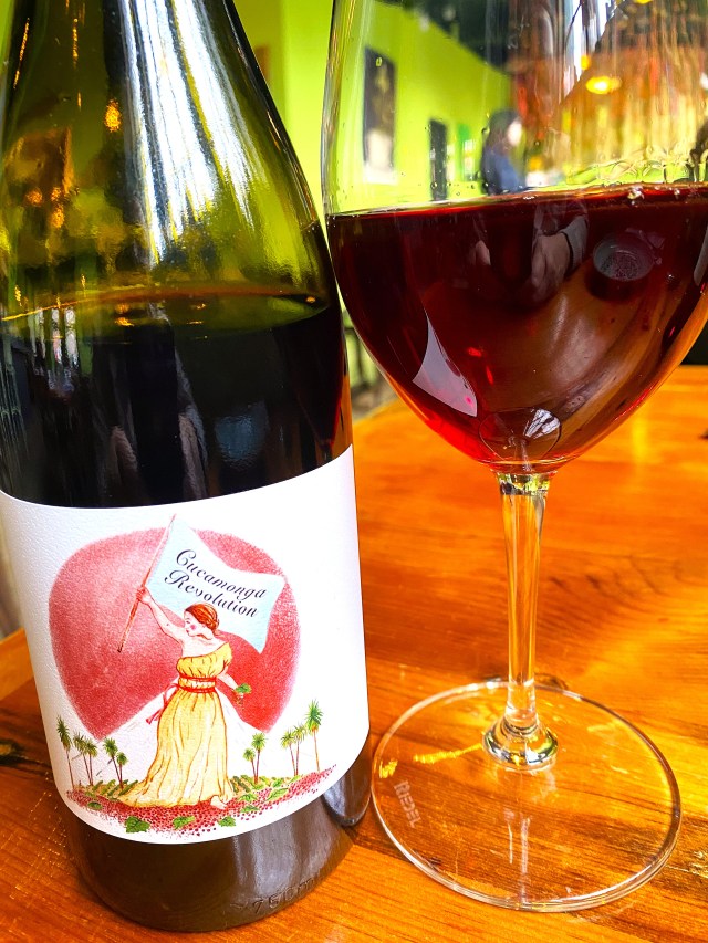 The latter half of the meal, which we selected properly for timing was Striped Bass with Beluga Lentils, Haricot Verts, Succotash, Lotus Root, Scallions, Chili Crunch and Dashi. The other entrée that we shared was Braised Short Ribs with Sheridan Acres Beans, Root Vegetable, Cabbage Mostarda and Shitake Chip. Followed by Colombian coffee and German Chocolate Cake with Chocolate Mousse, German filling, Chocolate Sauce, Caramelia Pearls and Candied Pecans. We then went for a red wine with Scythian Wine Co. “Revolution Red” Cucamonga Valley 2023 bottled by Parr Wines LLC. Scythian Wine Co. is a new project by sommelier-now-vigneron Raj Parr that highlights the nearly lost viticultural heritage of Los Angeles. Before Prohibition, the city was the center of the California wine industry, with Palomino, Mission, Grenache and Zinfandel planted on the sandy soils. The remaining vineyards are relics, interspersed between warehouses, corporate headquarters, neighborhoods and highways. Some of the vines are close to the century mark and had never been treated with fungicides, sulfur or copper. Phelan Farm is a California producer based in the village of Cambria specializing in minimal-intervention wines. Greg Phelan founded the estate in 2007, but the farm was in the Phelan family since 1851, and Raj Parr now leases the entire property. Cucamonga Valley was once the largest area under vine in the state, now there are less than a thousand acres devoted to vineyards. The soil in the hot, desert-like valley are rocky and sandy, allowing for excellent drainage, which produces smaller berries with thicker skins and more concentrated flavor and bold tannins. The existing vineyards survived during Prohibition as they grew grapes for home winemaking which was allowed during that era. This fruit is from the Lopez Vineyard that was planted in 1912. This wine is a blend of sixty percent Zinfandel; thirty percent Palomino and ten percent Grenache planted on sandy granite soils. The fruit is hand- harvested and fermented whole cluster in open-top neutral fermenter, then aged in old French Oak barrels. The wine is bottled without fining or filtering. This red colored wine offered notes of black cherry and licorice. On the palate this medium-bodied, well-balanced wine displayed tones of cherry, cranberry along with red florals and spices blending with big tannins and ending with a medium-count finish of fruit and spices.