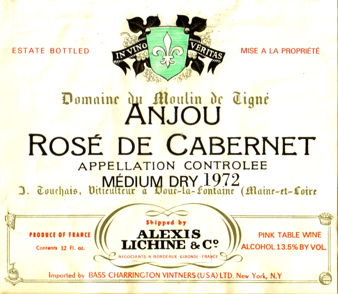 Several shopping trips led to no success. In the early seventies when I started my wine education, the selection of wines even in better shops was limited. I am sure that a lot of the distributors were more interested in securing the rights to sure-sellers. Also you really couldn’t blame a retailer for wanting to carry wines that would sell on their own, with a song and dance by the owner. It would be easier to wax poetic for fifty dollar wine, then to exert time and energy for a ten-dollar wine. Business is business. I finally found a bottle of Anjou, not only an Anjou, but a more unique one. A Rose de Cabernet made from the Cabernet grape and not the Groslot grape.