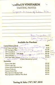 There was no Caymus Special Select made in 1996 or 1993. They still had some of the 1995 but they were not offering it as part of the tasting. This is the one that people always talk about and rightfully so. We bought the 1995 to cellar and enjoyed it, as one would enjoy a First Growth Bordeaux, it was that good. My only complaint is that try as I might the labels on the bottles are impossible to remove, they dissolve and become an utter mess, hence no visual memories to look back on.