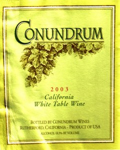 A conundrum is an enigma, a puzzle, a mystery or a riddle. Conundrum on the label humbly states that it is a California White Table Wine. The Wagner family has a proprietary blend that makes this wine, much more than a white wine. When we went to the winery we learned that the Wagner family firmly believes less is more. There were five wines to taste, very short and sweet.