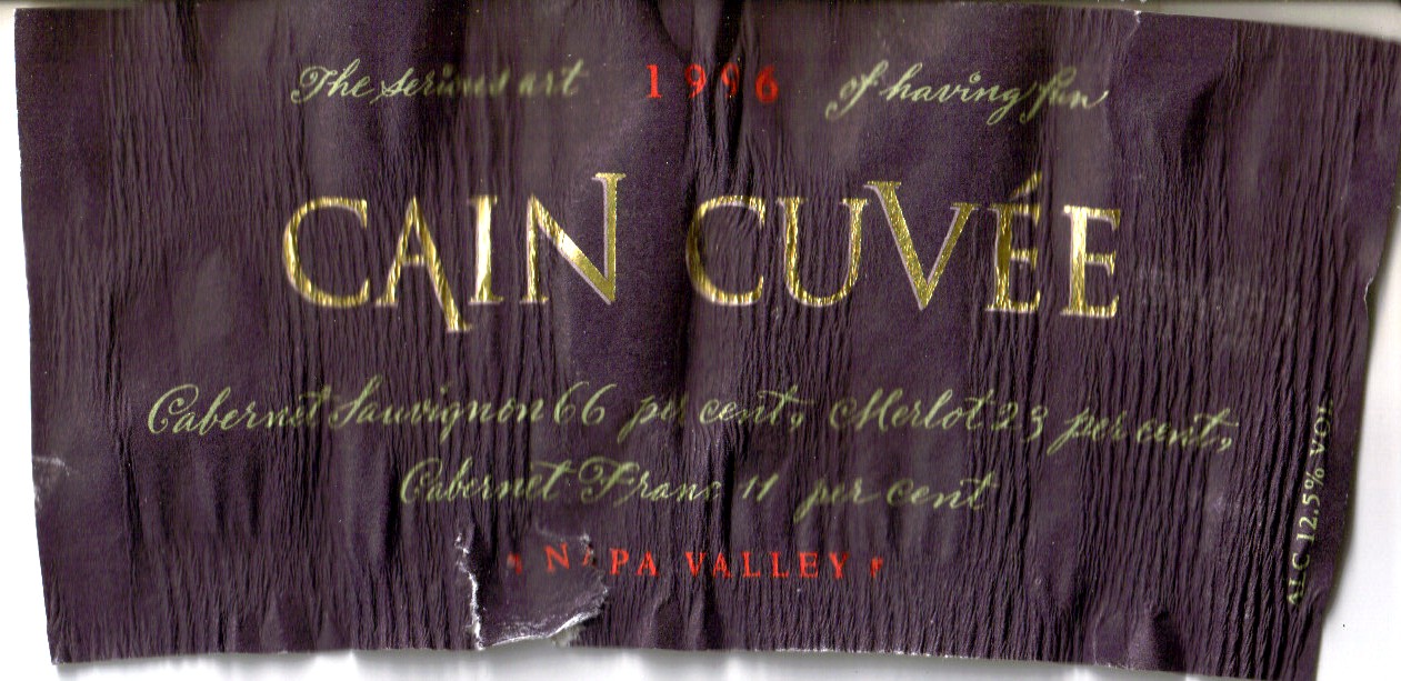 The first wine offered was a 1998 Cain Musque (a clone of the Sauvignon Blanc) and this was grown and hand harvested at the Ventana Vineyard in the Monterey area. This was an experimental wine for them, as they felt that most Sauvignon Blanc grapes were harvested at the wrong time. The Cain Musque is longer offered. It was a very aromatic and crisp Sauvignon Blanc and is this wine that my brain always recalls whenever I have this type of wine.