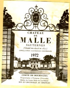 Sauternes wines are produced differently from other Bordeaux wines. There is a mold, referred to as the “noble rot” which creates shriveled grapes with a higher concentration of sugar per grape (and this does not occur every year). When this occurs the production of wine diminishes, but the finished product is legendary. Even if you don’t like sweet wines, a Sauternes/Barsac wine should be tried at least once in your tasting life.