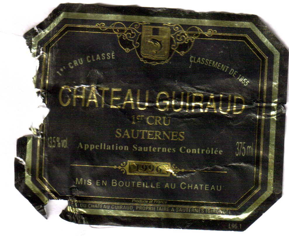 Sauternes is one of the famous white wines of the Bordeaux region, and is acclaimed as a great dessert wine. Always make sure that you are buying Sauternes and not Sauterne. Sauterne is used by other country winemakers to designate their dessert wine, but it is not Sauternes. Sauternes and Barsac are adjacent and each has its own Appelation, though some Barsac wines list themselves as Sauternes. You may also see a designation Haut-Sauternes; this is not a legal designation or reference to a geographic area, usually just a marketing method to mean a sweeter wine from the regular wine.