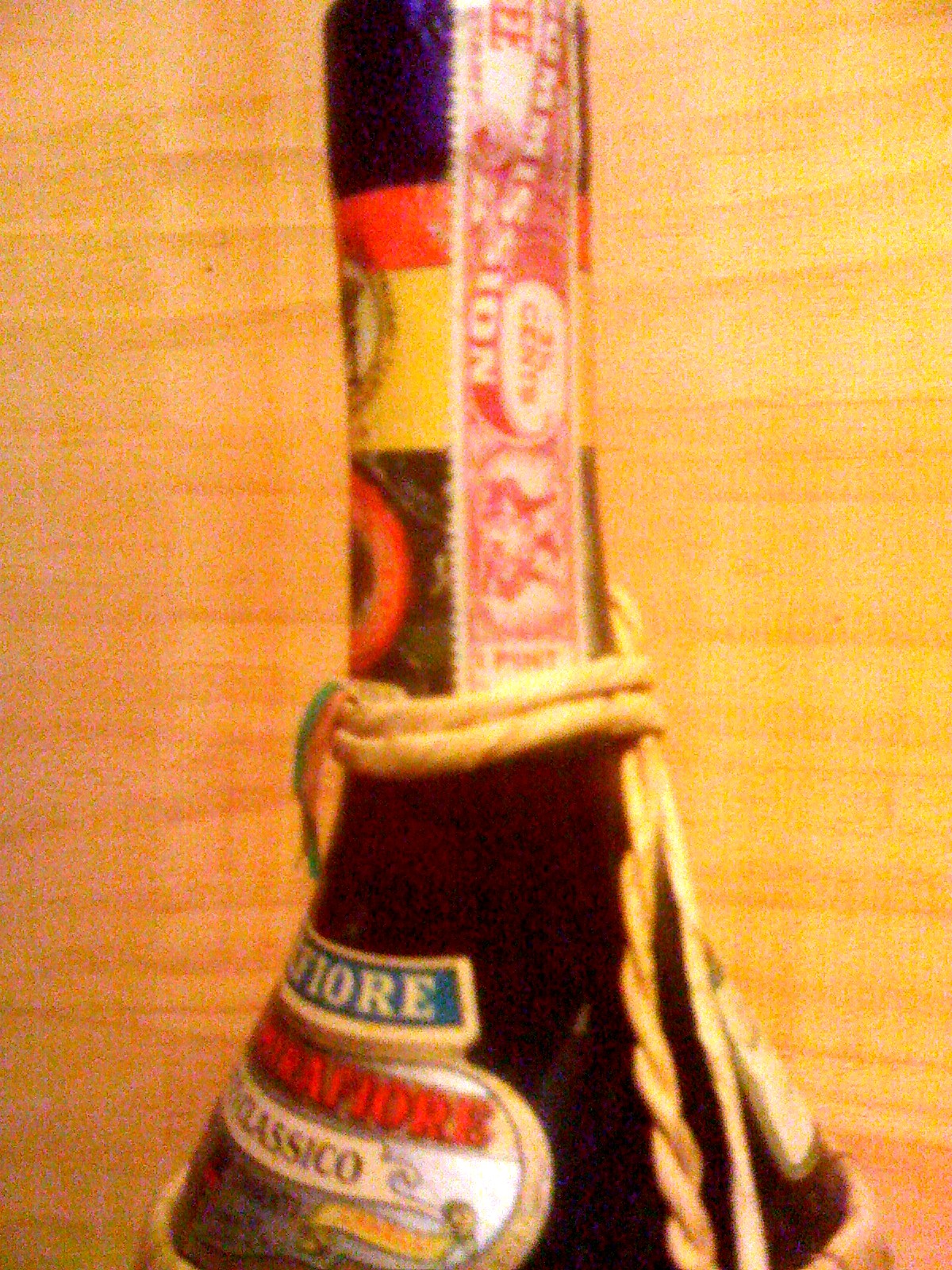I am showing a bottle of 1928 Calvet Chablis from Beaune with a six cent banderole (the stamp requiring the ripping of it to open the bottle). The other bottle is a Mirafiore Chianti Classico in a straw fiasco wrapper with a three and one quarter cent tax banderole (the straw wrapped bottles are normally found to hold less than the 750 ml of a standard bottle, the Chianti is actually only a pint bottle). These were given to me as curios for my cellar, as I have to intention of ever trying even a sip of either wine.