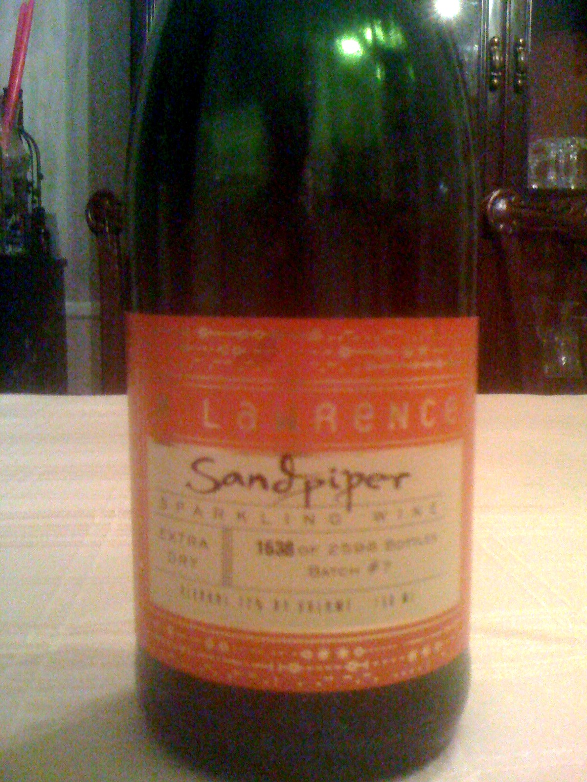 Of course I had to go into the cellar and pick out some wine for everyone to enjoy. I chose a couple of bottles of wine, that my Bride brought home from one of her trips to Traverse City. We have been to the L. Mawby winery in Suttons Bay a couple of times, and my Bride has been there a couple of more times, but that will be another story. We opened up a couple of bottles of M. Lawrence “Sandpiper” Sparkling Wine Extra Dry, which said it came from Batch #7 and each bottle was numbered. These wines are made in small batches and fermented in the “cuve close method” as indicated on the label. I prefer a little more sweetness myself in this type of wine, as I am always afraid that extra dry can be have little nuance. I am happy to say that I could taste some fruit, and a little oak which made it more appealing.