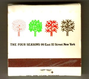 After a full day of “shopping” I looked forward to another evening of dining, even though the dinners were still business, as you were being courted to cement deals and perhaps make a larger purchase then you had originally planned on. I found myself at the restaurant in The Four Seasons Hotel, another landmark in Manhattan. These grand hotels almost intimidate you with the fact that you are “a fish out of water,” at least that was the way I felt. This was a different lifestyle than I was used to, and it truly felt good to be there if only for the moment. This evening our host handled the menu as well as the selection of wine. I remember having a wonderful seafood appetizer, a great salad (and I am not a salad person), and a remarkable filet with all sorts of sides.