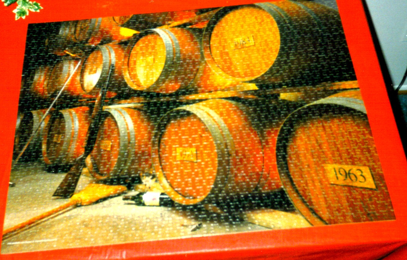 One year she found a gift, she was sure that I would like and she was right. It was a jigsaw puzzle by the same company that produces some of the Wine Murder Mystery Parties that we have held with our friends, and that I mentioned in an earlier post. There is a short novel about two warring winemakers and one roaring drunk. You first read the book, and then you assemble the thousand piece puzzle to solve the mystery.