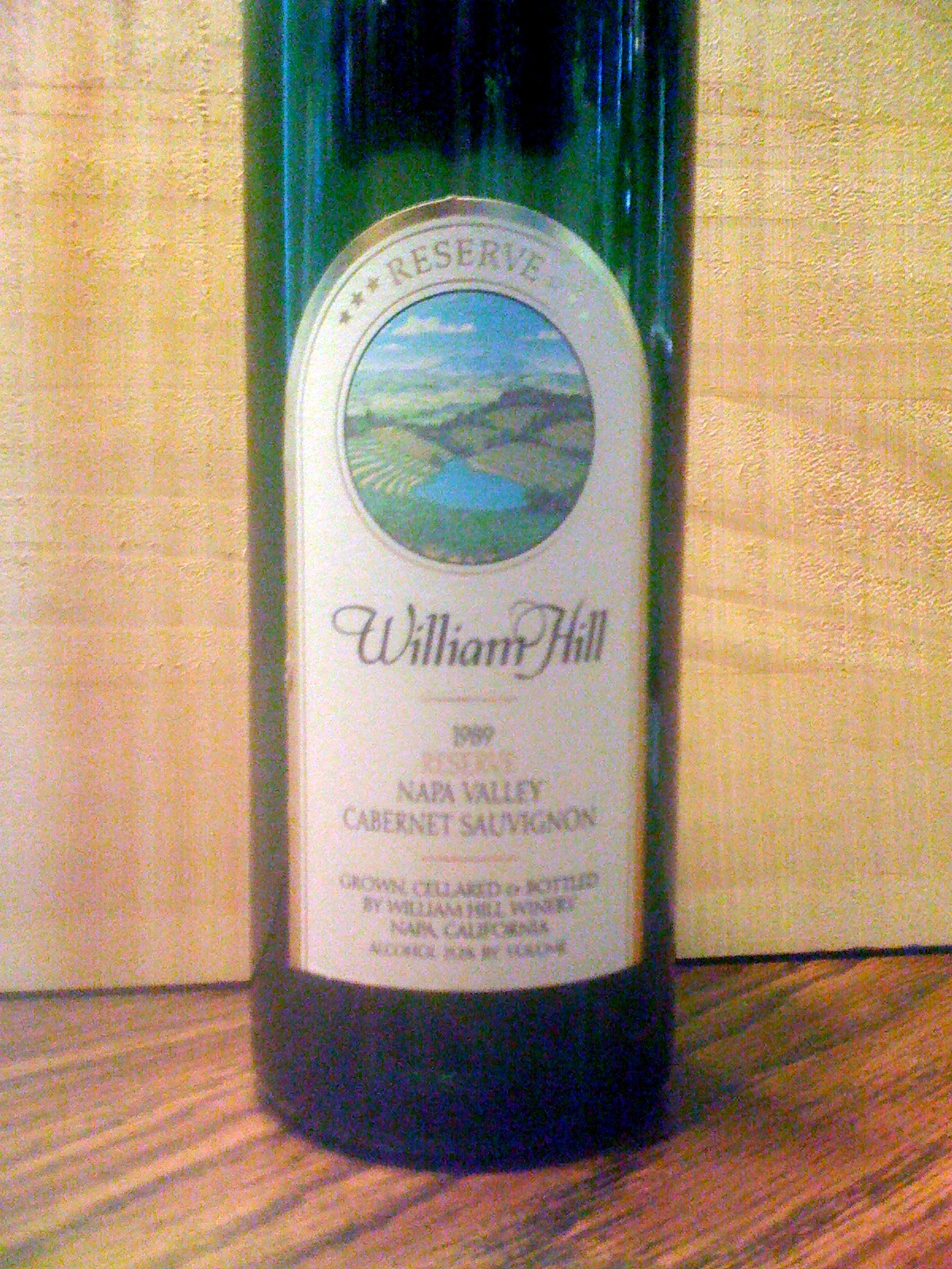 Afterward there was still a bit of thirst, and I went down to my cellar to get another bottle of wine from the eighties in keeping with his anniversary. I brought up a Cabernet Sauvignon from Napa Valley. It was a William Hill Reserve 1989. The cork broke halfway which necessitated decanting this wine as well. We were surprised at how much tannin was still in this wine, as well as the fruit. We had anticipated less tannin, but it just goes to show you that some vintners when they claim “reserve” mean it, and it is not just a marketing ploy.