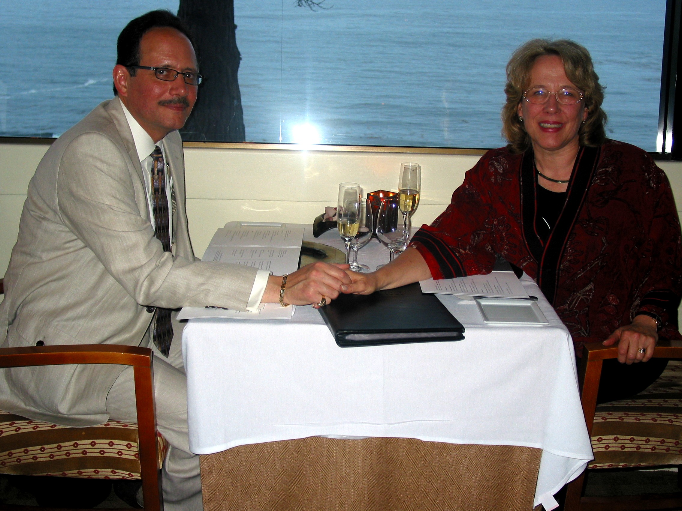 The restaurant is very unique in that the tables are set on what I would call stadium tiers. Each level is high enough that every diner gets a beautiful view of the ocean. We called early enough to guarantee a table for two, right along the windows. The restaurant itself is cantilevered (for a better term) out from the bluff and suspends itself over Highway One. You cannot see the cars or the traffic, but you get a stellar view of the ocean and the setting is very romantic, and the service of the staff is five stars.