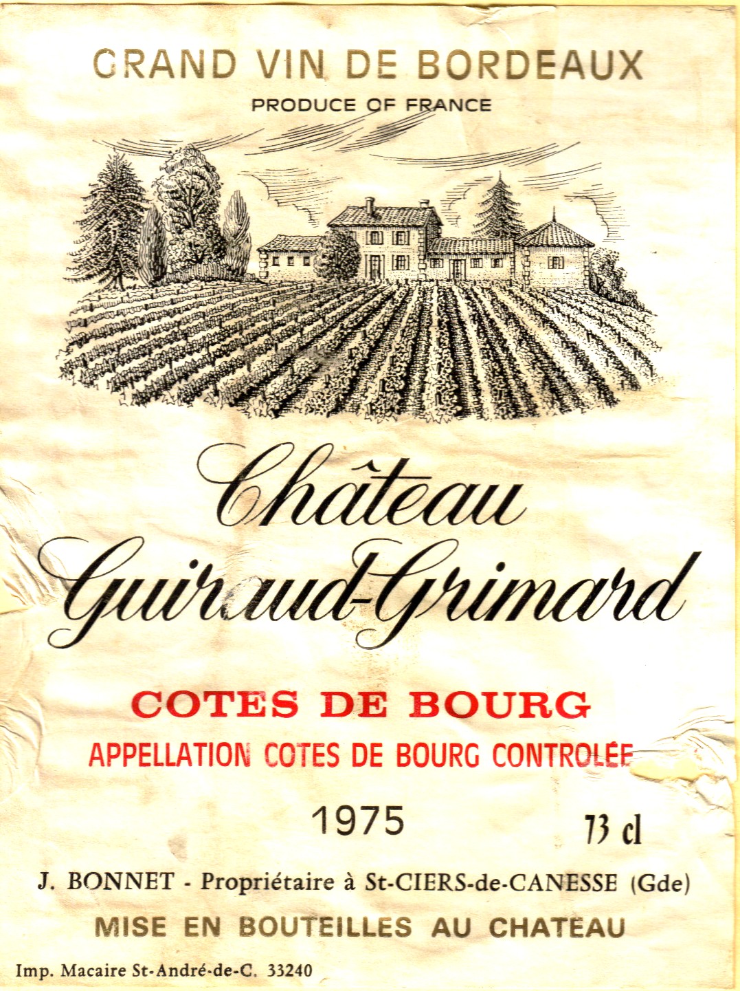 The wine list was not large, but at the time very few places had large wine lists, as it was not as popular as it has become today. When I was there, in my youth I felt that French wine was the only thing to order, of course, to be truthful, that was what was usually carried. The American wine revolution was just under way, and in Canada wine was not being produced like it is today as well. I remember being proud of myself for trying a lesser know area of Bordeaux, the Cotes de Bourg. The wine was listed under Bordeaux and even the label says Grand Vin de Bordeaux, because that is the type of wine produced from this area. I had a bottle of Chateau Guiraud-Grimard 1975 and it was just a great choice to pair with a steak. While the Cotes de Bourg is not as lush and bold as a First Growth, neither is it priced like one. This area reminds one of a Bordeaux Superior or even some wines from the Medoc. It is well worth the investment, I feel, as it is easy on the wallet and yet it still delivers that taste, one is looking for in a Claret.