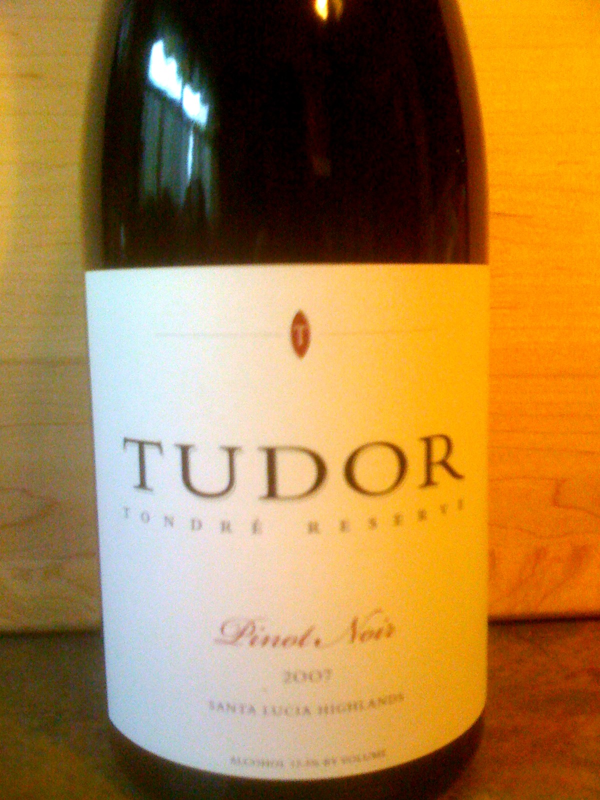 The third wine is also from the Santa Lucia Highlands and is from Tudor Winery. This is a 2007 Tondre Reserve Pinot Noir. This is a low yield production process also using French barrels and small fermentations to rival the productions methods found in the Burgundy region of France. This is the first Pinot Noir that we have received from Tudor with a specific grapefield designation and we are looking forward to trying it, after we have allowed it to settle in our cellar for some more aging.