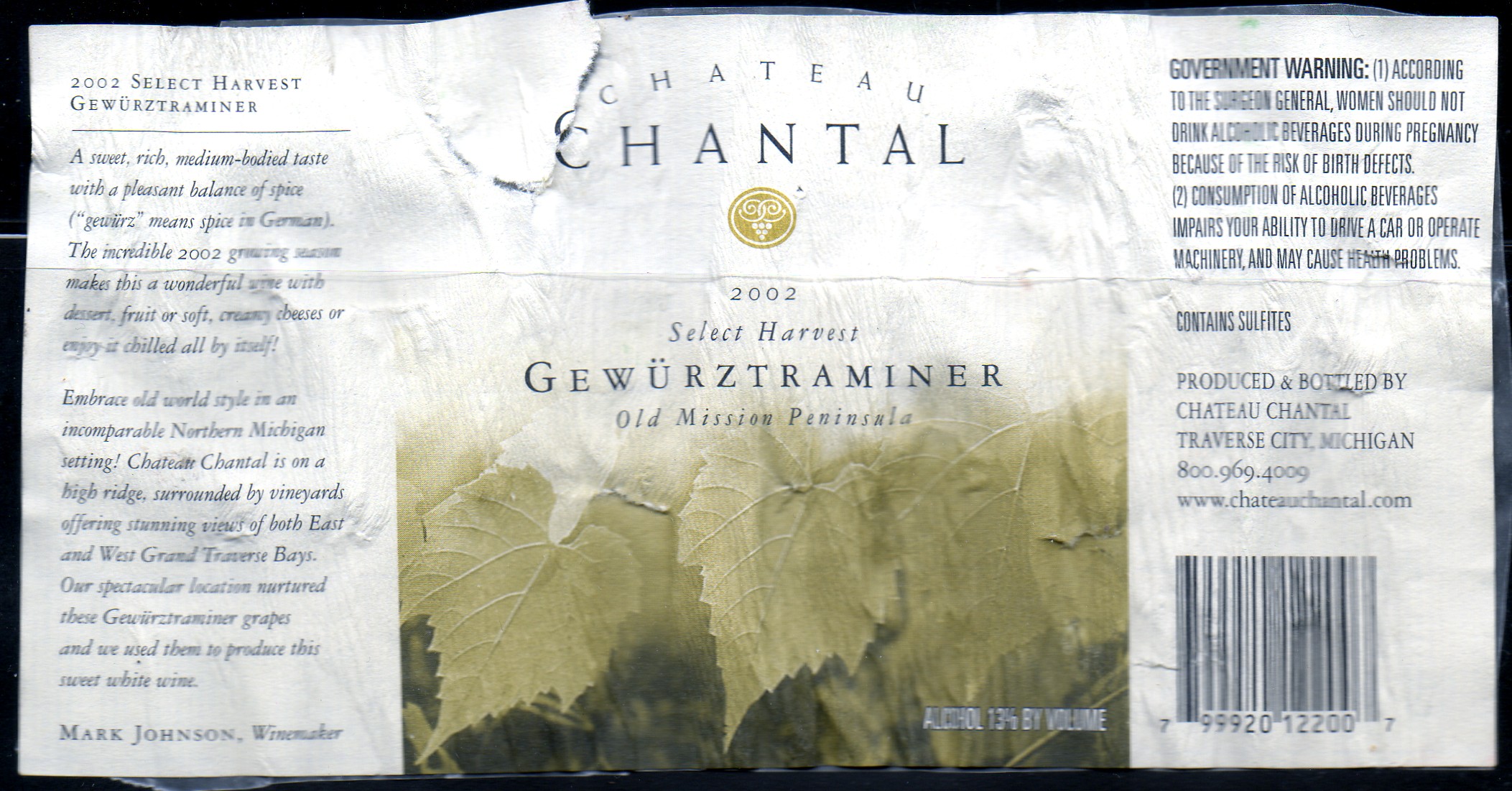 The restaurant also likes to feature some of the best wines from the local area, and since we have been to many of the wineries as well, it was all familiar. Some of the ladies in our group were a little apprehensive about having wine as they felt that it may be too overpowering or too dry for their tastes. As I was studying the wine list, I told them that I found a great wine for us to enjoy on this pleasant summer evening. I started by relaying how when we first went to the winery, how we were dazzled by the natural beauty and the picturesque setting that they were located on, and that one could see both bays, as they were at the end of a peninsula in the Traverse area. I then went on to explain about this one wine, that I thought everyone could enjoy, because it is not sweet, rather it has a great natural spice to it from the grape varietal. That evening we went through several bottles of Chateau Chantal “Select Harvest” Gewürztraminer 2002. Chateau Chantal is at the end of the Old Mission Peninsula and they have been making fine wines, from the first time that I tried them, and I am not afraid to suggest the wines to anyone that wants to try a Michigan wine. Since as I said we had several bottles of the wine that evening, the other diners, though they may have been apprehensive at first, found that they really enjoyed the wine.