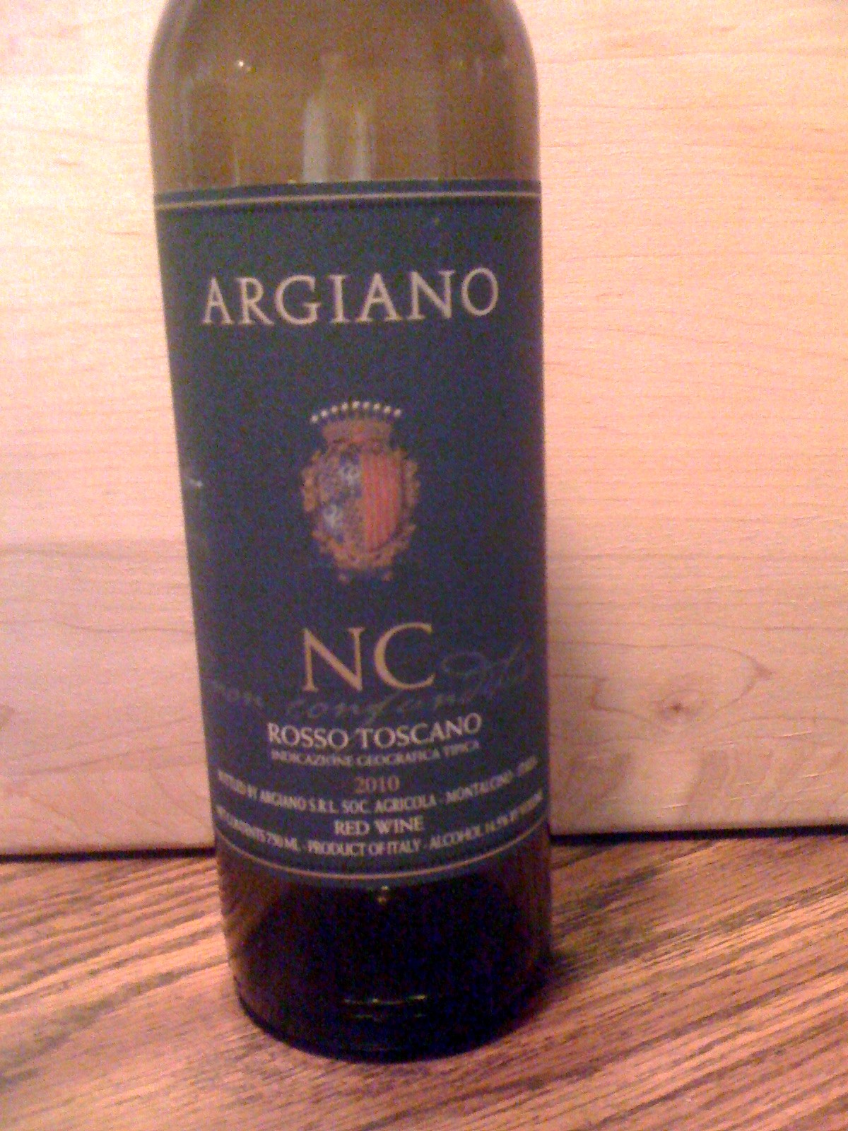 When I was looking at the wine list, the first page was offerings of wine by the carafe, and then when I flipped the page, all I saw was stellar wines that I did not feel like ordering. I was amazed that there was such a major jump in the wine offerings, and then I realized that the middle page was stuck together, and here was a very nice wine offering in the price point that we were comfortable having amongst friends. The wine that was chosen was listed as a Super Tuscan and I was intrigued. The wine that we received was an Argiano “Non Confunditur” Rosso Toscano 2010. It was an interesting blend of varietals; Cabernet Sauvignon, Merlot, Syrah and Sangiovese, which had been barrel aged for a year and then four months in the bottle before it was released. When our server brought the bottle, she was all set to uncork it, and she was surprised as we were that it had a screw cap enclosure. The wine I must say had good color, nose and a delightful aftertaste, and perhaps I am just used to having red wines with fish at times, but it worked very well with the shrimp dishes. I would suggest this wine as a very affordable wine to compliment a good Italian dinner and I do think it would be excellent with any meat dish as well.