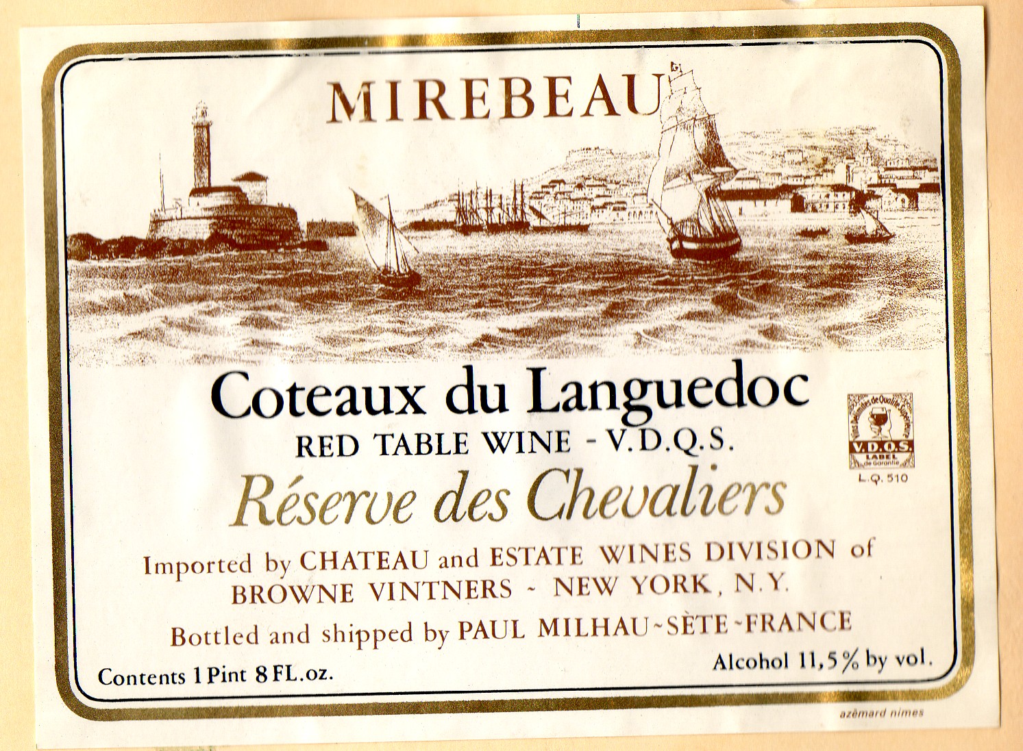 I noticed that on my last trip to Louisville, there were a few popular priced wines that I tried, and some made me rethink about some of the wines that I tried when I was still a student. Back then I was a real student, but I still feel that I am a student of wines. Neither of the two bottles that I will mention has a vintage, whether they were on a neck band or were just non-vintage I cannot recall with certainty, though I would say that I tried them around 1970 or so. I do remember that I could not always afford a fine wine, and to this day, that statement still holds true. I was experimenting with all types of wines and especially French wines, because at that time, France was where it was at, for wines. I remember being curious about the different regions and if there were hidden gems that I could unearth for myself and save three to then dollars a bottle. I would make a pest of myself asking questions from wine merchants and hope that they did not realize that I was at that time, an underage consumer. I used to bring a couple of wines to family gatherings, as I could not contribute any culinary skills for the occasions. The two bottles of wine that I will mention were under the Mirebeau label, and were bottled and shipped by Paul Milhau of France. I did a Google search for these two names without any luck, so I must surmise that neither name is still being used in the wine trade.