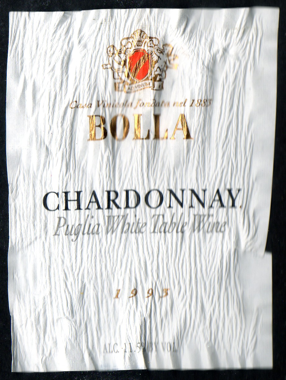 For our wine selection that evening we had a charming Bolla Chardonnay 1993 from the Puglia district of Italy. This wine was a crisp Chardonnay from a very larger wine shipper of Italy. I describe it as crisp, because it was not the buttery, oakey Chardonnay that was the rage out of California at the time and I found it to be a nice change of pace and paired very well with the fish dishes. Alas this restaurant is no longer in business, and from what I gather the owner/chef has found a new location in the city.