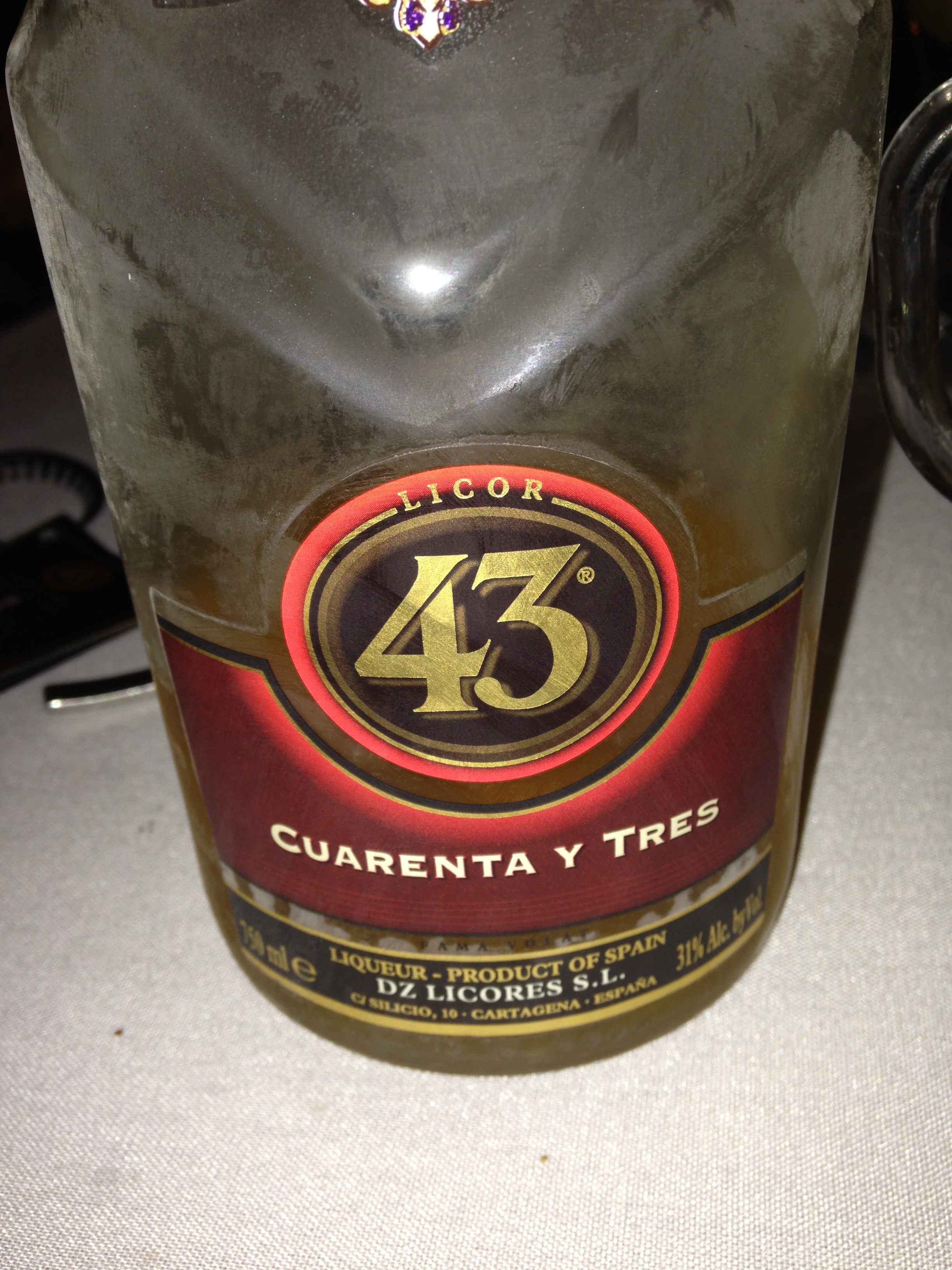 The other beverage that I have to mention was an after dinner drink that we had from Spain called Licor 43. The bottle came out with a round block of ice surrounding it, and it was poured into these small chocolate cups. The after dinner drink was citric and had flavors of vanilla and I guess another 41 other ingredients that were steeped in this beverage. To me, orange was the strongest flavor that I noticed, and since it was so cold, some of the other trace flavors eluded me, especially in the chocolate cup. We were touted that this drink aided in the digestion of our meal and who was I to argue. All in all, we all left sated and happy from the meal, the drinks and the conversations.