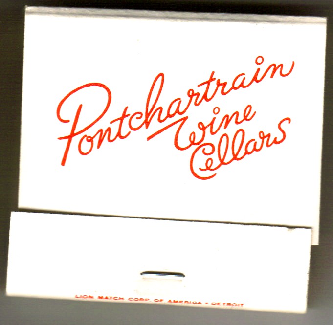 As I was looking at my collection of matchbooks, I looked at a place that was legendary when I was a kid.  Most of the fine restaurants were still located in Downtown Detroit, and since I went to school Downtown, I thought of myself as rather cosmopolitan.  The Pontchartrain Wine Cellars was across the street from the Pontchartrain Hotel and across from the original Cobo Hall.  It was one of the fancy French restaurants of the era, and it was a very popular place for business men and big dates.  It was one of the original bistros in the area and while they had a great wine list, they had no hard liquors, which was unique in that time and era.  This was where I was introduced to my Vermouth Cocktail for a before dinner drink, much to the consternation of most of today’s bartenders, as they always have to ask what it is, usually through the waiter.  It is a very easy drink as it is equal parts dry and sweet vermouth with a splash of bitters, but it does awake the taste buds for a fine meal.  Legend has it, that Cold Duck originated at the bistro in 1937 and that it was a mixture of a Mosel wine, a Rhine wine and Champagne.  Tradition has it, that it was done with left over wines that were opened and not finished.