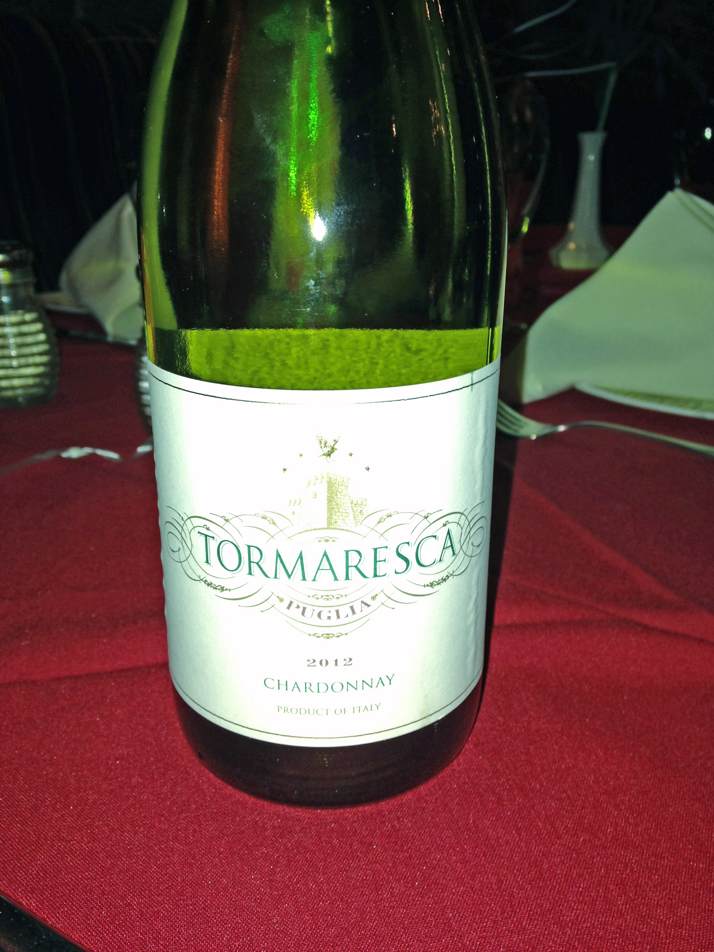 I know that we ordered three bottles of wine for the evening, along with the other beverages that were ordered. One of the bottles of wine was removed before I could take a picture of it, so I had to go and find it on the web. We had three different wines from Italy, as Casanova is a Mediterranean bistro, with a lot of Italian influence. We had a bottle of Mionetto Prosecco DOC Treviso NV, the sparkling wine that seems to be very popular these days. This wine is made from the Glera varietal and is done in the Charmat Process which does not have nearly the depth of a great Champagne, but it is still festive and easy for most people to drink. We also enjoyed Nuchese Montepulciano d’Abruzzo 2011, this type of wine is always a go to wine for me with crowds as it is an easy red that is not over-powering and heavy as some Italian red wines can be. It is made from the Montepulciano varietal and blended with Sangiovese, the other popular varietal of the area. I think the hit of the evening was the Tormaresca Puglia Chardonnay 2012. This charming wine had a winning attitude with its crispness and it was even accepted by our guests from Washington State, who thought that I should have supported their state’s wine for the evening.