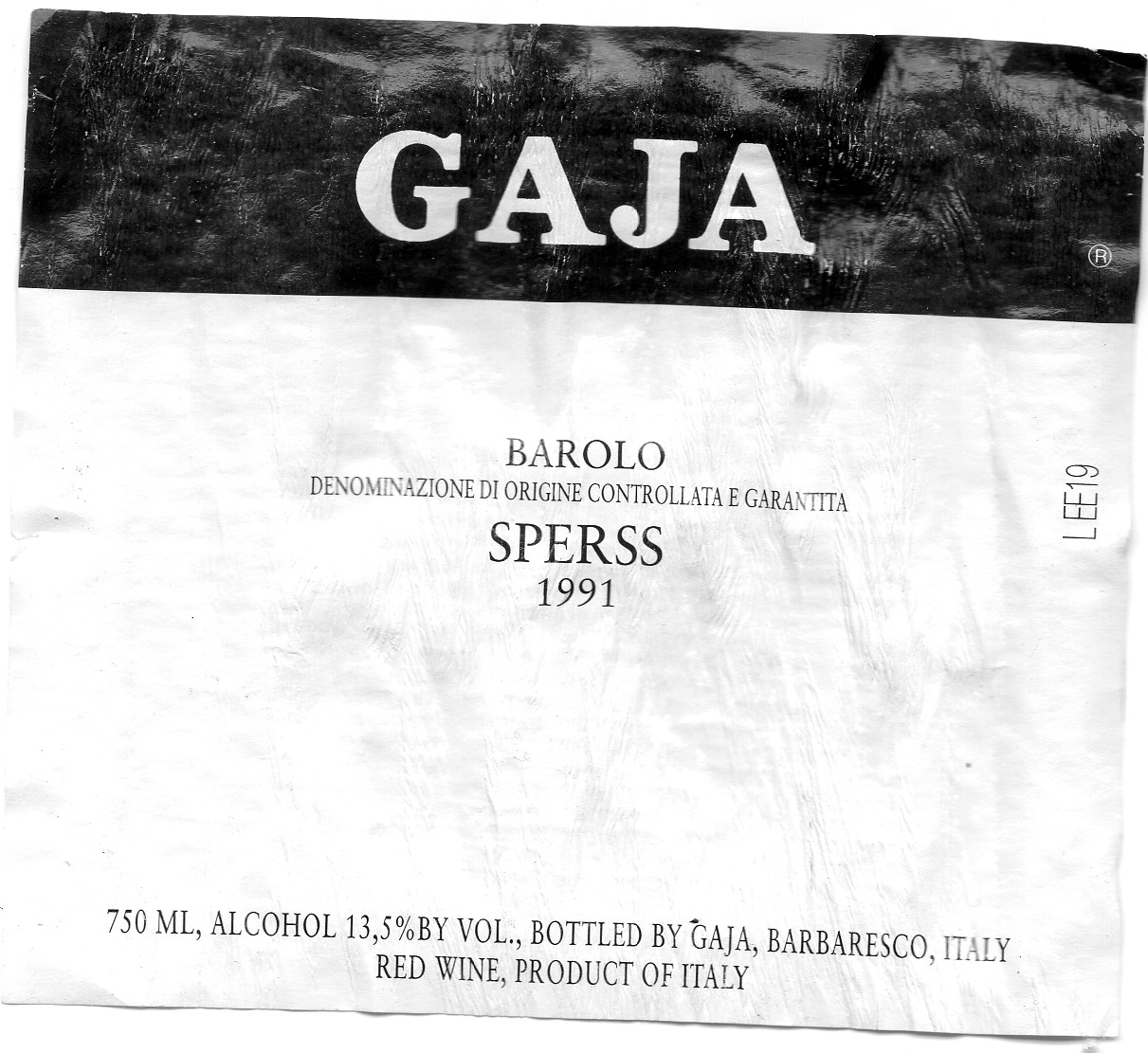 We had a wonderful bottle of wine that evening from one of the great wine dynasties in Italy, the Gaja family. A bottle of Gaja Barolo Sperss 1991 was our choice for the meal. The Gaja family has been making wines in Italy for over a hundred years and they have been fine tuning their craft continuously. They had made a Barolo wine and then they stopped for a while, because they only wanted to use grapes from their own properties and had stopped purchasing grapes from outside vineyards, then they had a chance to secure thirty acres or so in Barolo and this cru vineyard is called Sperss. This wine is made from the Nebbiolo varietal, which is the famed grape in the Piedmont, though in the late nineties Gaja changed their DOG designation for Sperss to Langhe, the lesser designation because they had started to blend some other varietals into their Barolo wine, which is not allowed for DOG Barolo. As I have only had the Barolo and not the Langhe, I cannot offer an opinion, though I am sure that if the Gaja name is on it, it is done perfectly no matter the designation.