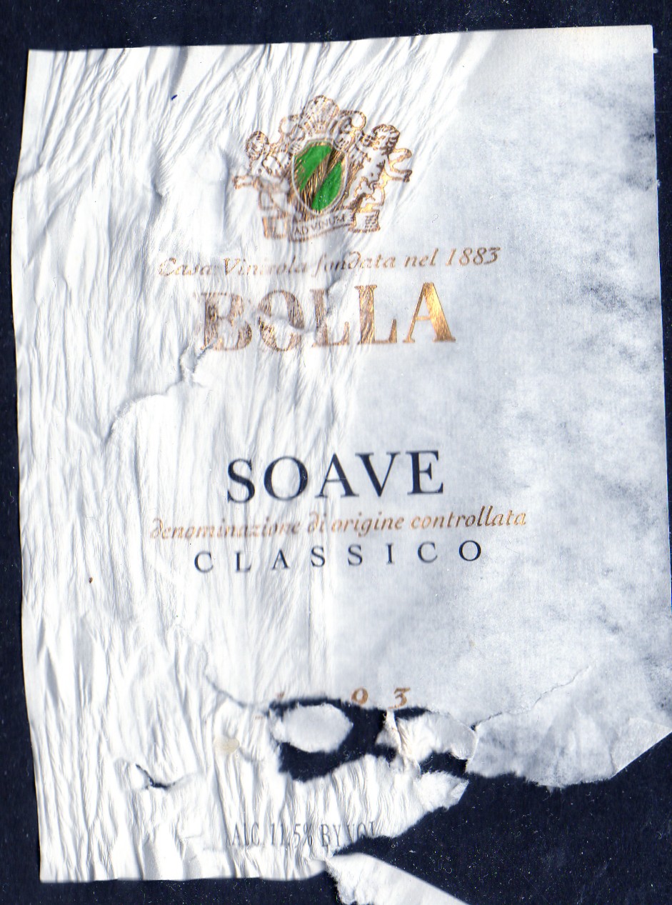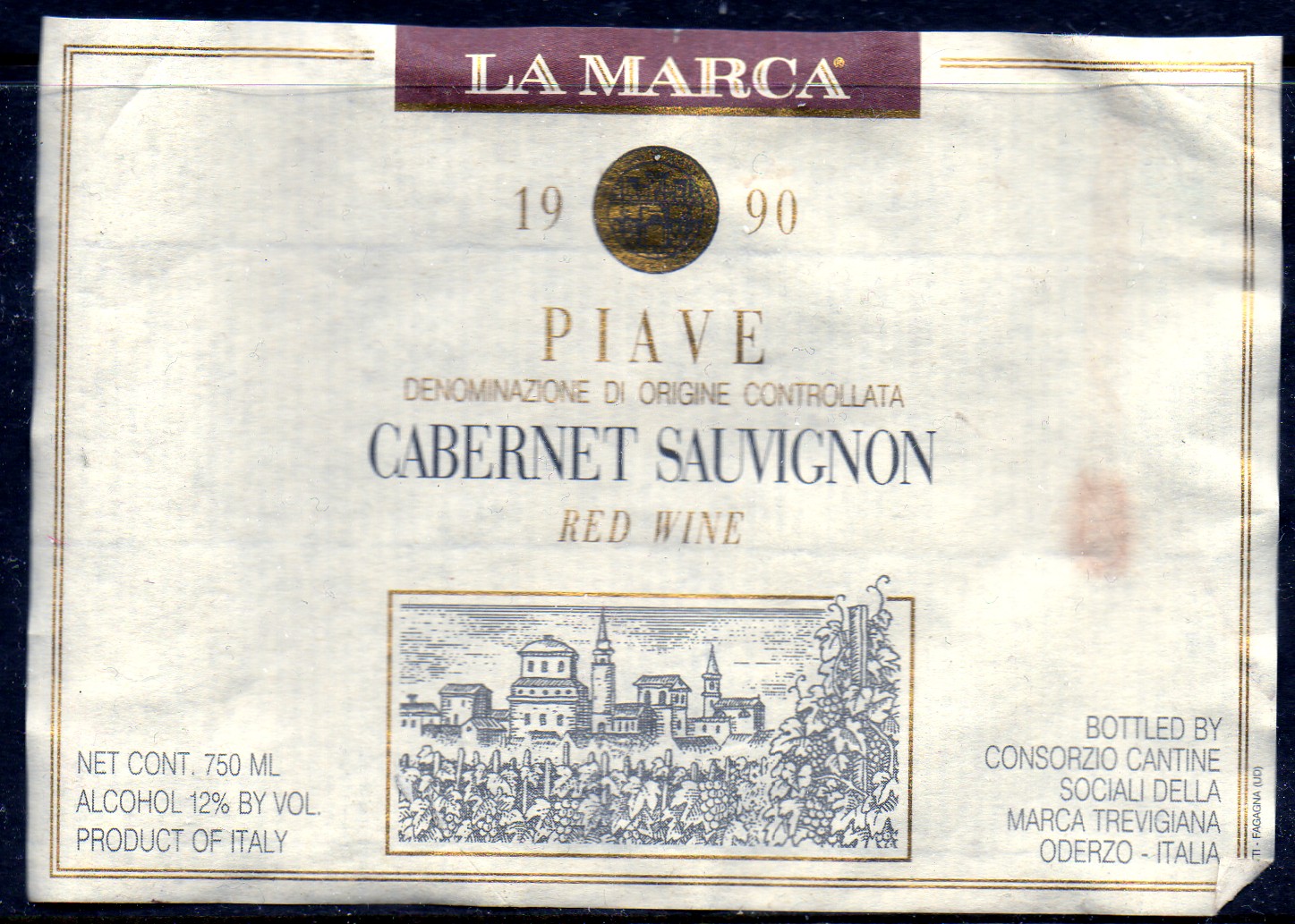 There was a well stocked bar, but I was going to enjoy some of the wine of the evening. Whether the wine was selected to add to the ambiance of the Tuscan structure or just by happenstance the white and the red wine were both from Italy. The white wine was a Bolla Soave Classico 1993 and comes from a village just East of Verona. The Classico designation means that the fruit was harvested from hillside vineyards around Soave and Monteforte d’Alpone, the two villages that have the designation for this wine. It is a crisp wine that reminds one of a Chardonnay, but a bit more bitter or dryer then would be expected. The rules are that 70% of this wine has to be of the Garganega varietal, and that it may be blended with 30% of other grapes, but only 15% of it can be from Trebbiano di Soave, also known as Verdicchio or Nestrano, and there may also be Pinot Chardonnay. They also protect the local grapes and allow up to 5% of the blend to have Friulano, Cortese, Riesling Italiano, Vespaiolo and Serfrina. All the wines from Soave are white. The red wine for the evening was La Marca Piave Cabernet Sauvignon 1990 and this comes from the province of Venezie, near the Piave River. This area of Italy is rather unique in that it is mostly planted with French grape varietals that were brought over in the late 19’Th Century. Merlot is the leading varietal for this area and accounts for about 60% of the production.