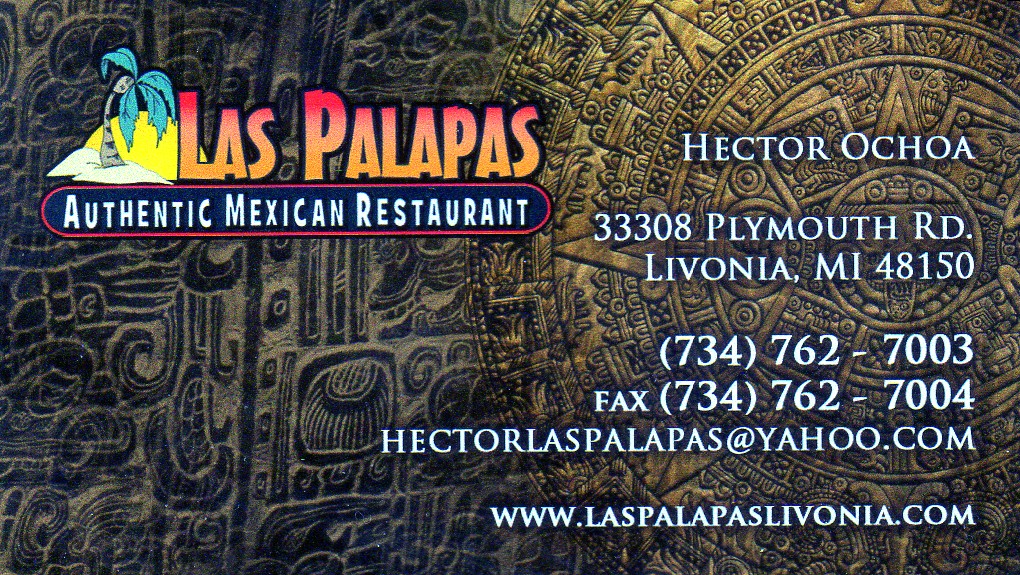We discovered a wonderful restaurant by accident in a strip center in one of the suburbs around Detroit, by word of mouth. We have gone there often since our first introduction and we have never been disappointed even when it is packed with diners, the food and the service have still been great. Las Palapas has always pleased us, even the fresh Nacho chips are a hit. Add the sauce and some Guacamole dip and I could almost make a dinner from the appetizers. When I get the Chicken and Mole Sauce, I am a happy camper. While my Bride sometimes orders the same dish, she also tends to enjoy the Steak Fajitas though they end up giving her enough for two dinners. I know that they have dessert there, but we never seem to have any room left to try any of the choices.