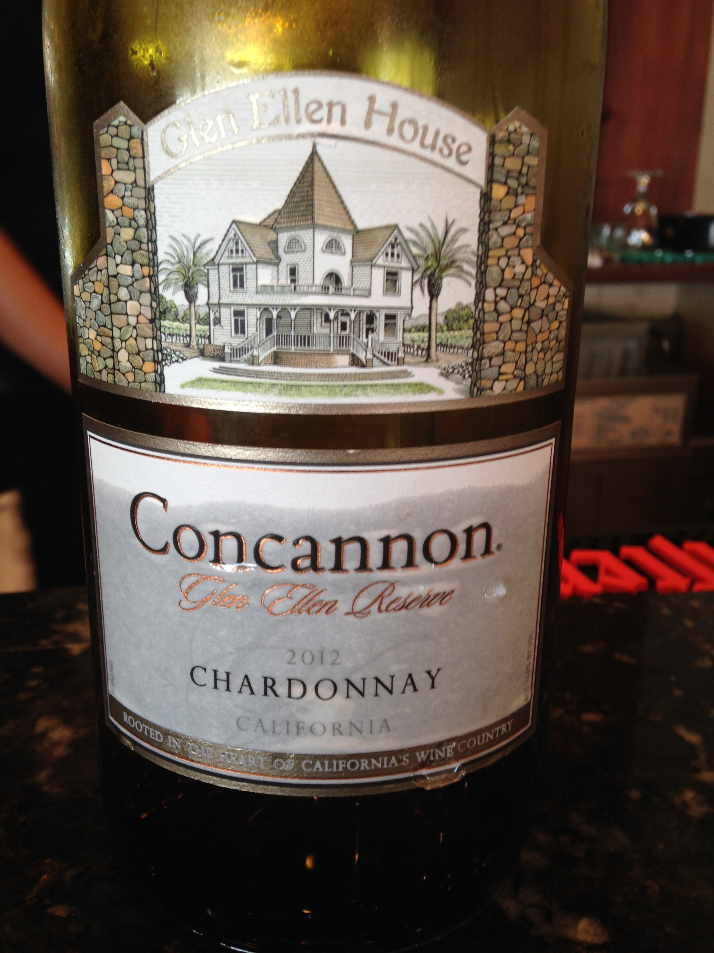 Our banquet room also had a private bar that was well stocked with assorted liquors and beers. The wines offered were typical for an institutional meal like this and I tried the Chardonnay, it was agreeable, so I stayed with it for the time; they also were offering Merlot and Cabernet Sauvignon as well. Concannon Chardonnay 2012 was my choice, and it is listed as a Glen Ellen Proprietor’s Reserve, but it carries a California AVA. Since they were not serving Mimosas I figured that a Chardonnay would be the best choice for the dishes I was choosing.