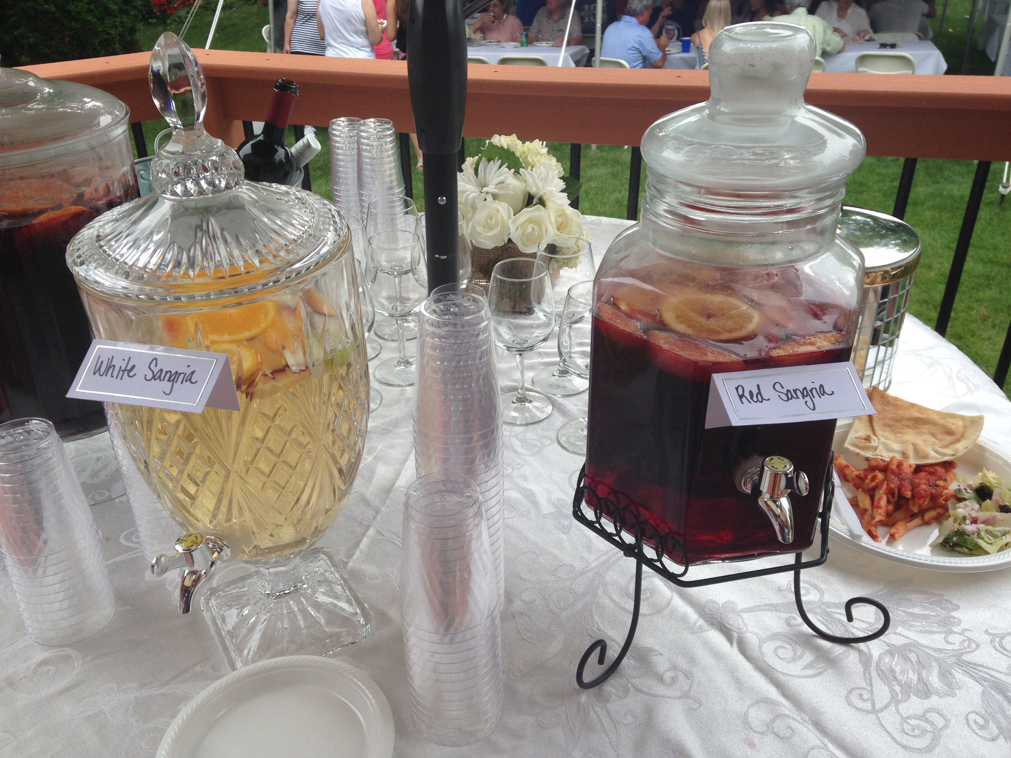 There were beverages set up all over the grounds, from water and soft drinks, beer and wine, as well as mixed drinks; so all of the basics were covered. There were also two iced urns of homemade Sangria, one white and one red, which I thought was a nice touch, instead of some of the store bought Sangria wines that are marketed.