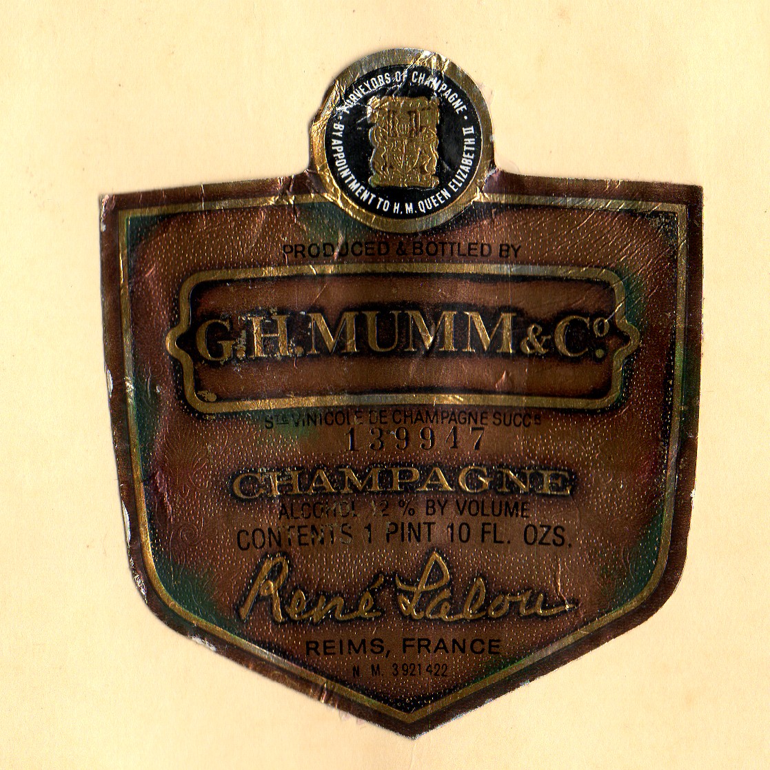 1. John, I think you might have purchased one of the deals of the century. Either the server did not know it, or the wine was incorrectly labeled on the wine list, but that sure looks like a label from Mumm’s Tête de Cuvée, René Lalou. I might be mistaken, but the name “René Lallou” only appears on those prestigious bottles that today push north of $100!