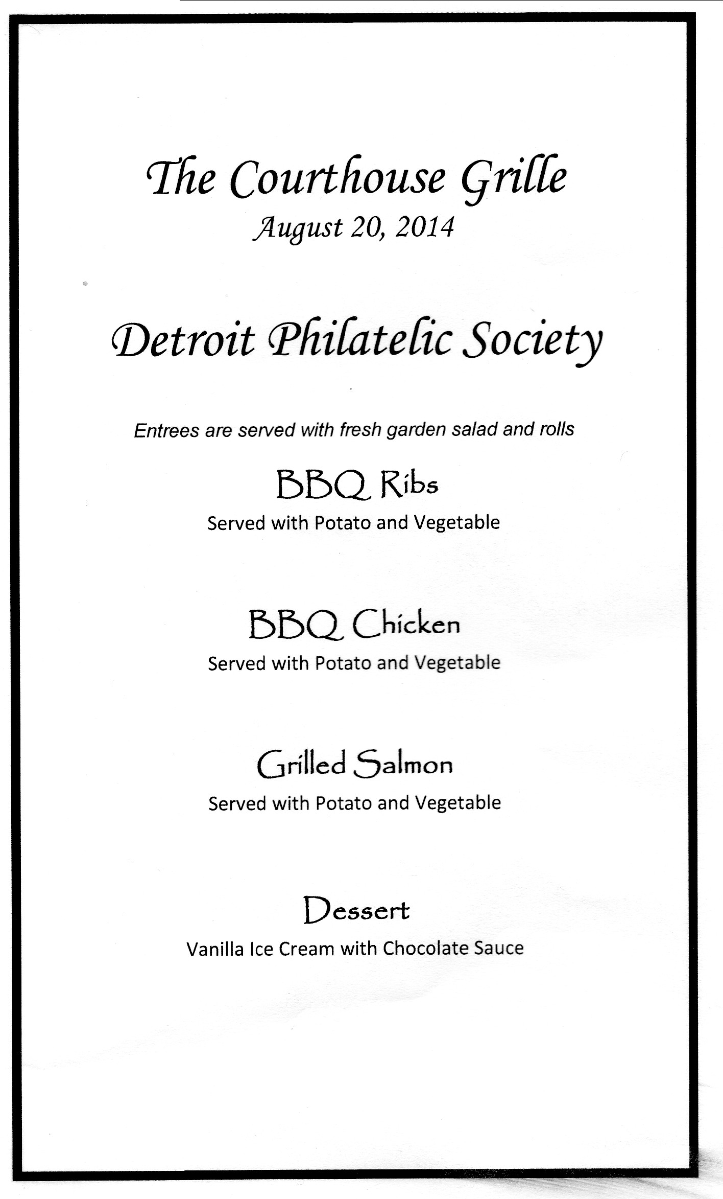 My dinner club is a venerable old society that was founded in the late 1800’s in Detroit. The Detroit Philatelic Society was even honored when the City of Detroit celebrated their 300’Th Anniversary as one of the oldest clubs still in existence, and by chance that was the year that I was President of the group. Some of the original and early members have their names on businesses and streets in the metropolitan area. I do not claim membership in that august and elite group that I cited, but I have been a member for years and thoroughly enjoy the group. The original group would have the meetings at a member’s home, but since most homes cannot handle a dinner party for up to forty-five diners let alone a spouse or staff to prepare the dinner, we now meet in restaurants around the area, according the largesse of the hosting members for the evening. The group tends to frequent just a handful of restaurants through out the year, because most places no longer have a private room that can handle the membership, which is a shame.