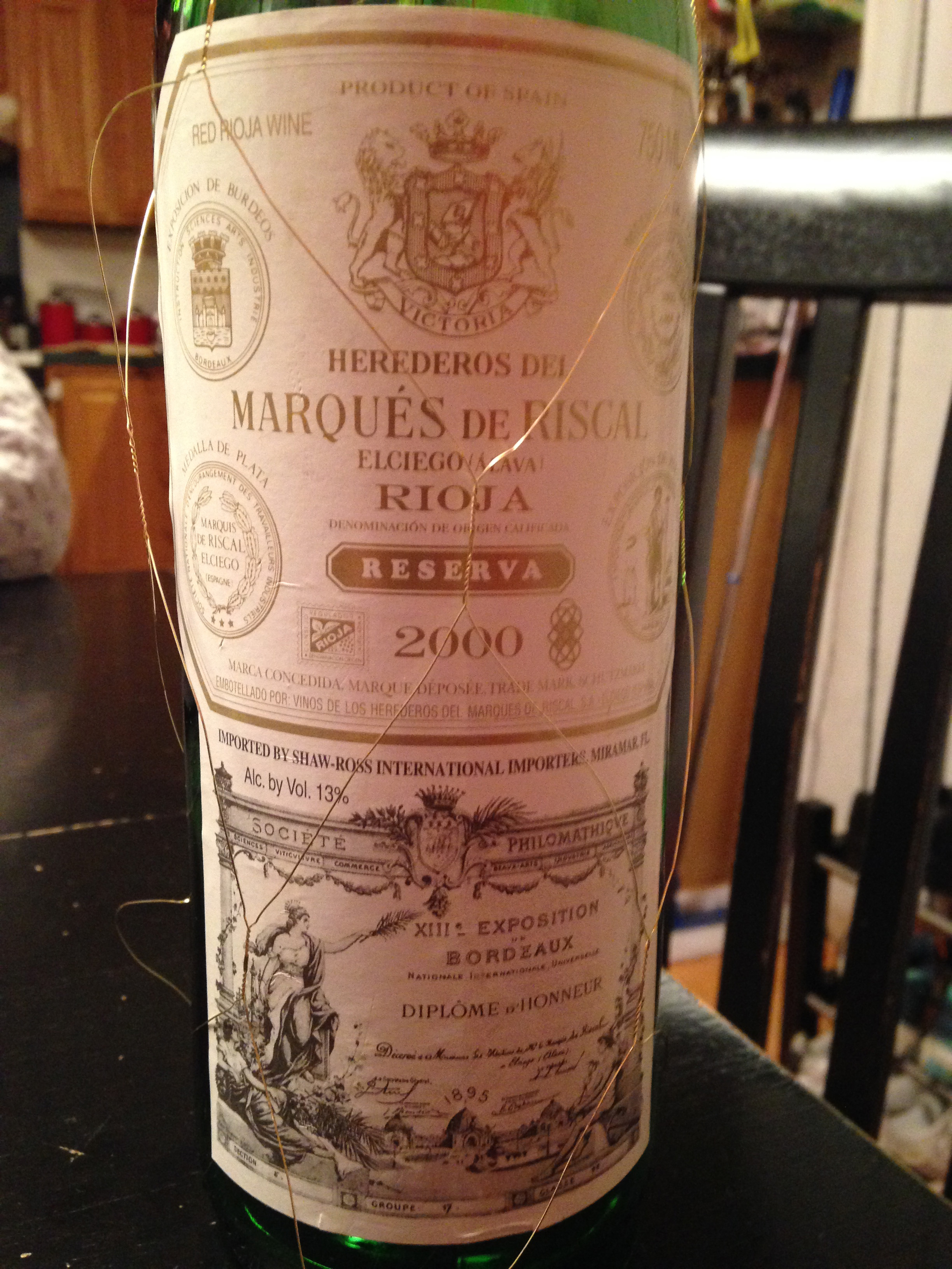 We started off the evening with a bottle of Mumm Napa Brut Prestige NV. This is the signature sparkling wine from the Mumm group in California, and it is a true California wine, and not a clone of their famed French Champagne. The wine is a blend of Pinot Noir and Chardonnay, and it brought a smile to us, as we remembered our trip to the winery during our holiday week in Napa. My Bride also mentioned that while we were there I ran into a customer of mine in the tasting room. As I was not sure what the dinner was going to be, and I thought that it would be gauche on my part to ask, so I brought a bottle that I thought would be safe with most any entrée. I grabbed a bottle of a wine that I thought might be new to them, and one that had some maturity to it, the proper name of the wine is Herederos dei Marques de Riscal Rioja Reserva 2000, but most of the time it is just referred to as Marques de Riscal and it has long been a favorite wine of mine. This wine is a blend of Tempranillo, Graciano and Mazuelo, but the Marquis de Riscal actually has official dispensation to include Cabernet Sauvignon in their wine, if the desire. This winery is located in the Rioja Alavesa, which is the smallest of the three sub-regions of Rioja, and this is a famed Rioja winery, of which I have read that they still have hundred year plus bottles of wine at the estate that are still fully drinkable, as the wine is very long-lived and the joy of this wine is that I can always taste some terroir. We gave them a bottle of a Meritage style red wine that we enjoyed at a wine tasting, and bought some for our own enjoyment, and the wine was new to them. My gift was a bottle of Diego Zamora Licor 43, and I do hope that I did not take the wind out of his sails, when I showed him a picture of this liqueur on my cell phone; as I think he had hoped to have found something new for me to try and to enjoy. All in all, it was a great night from some charming hosts that we are proud to have as friends.