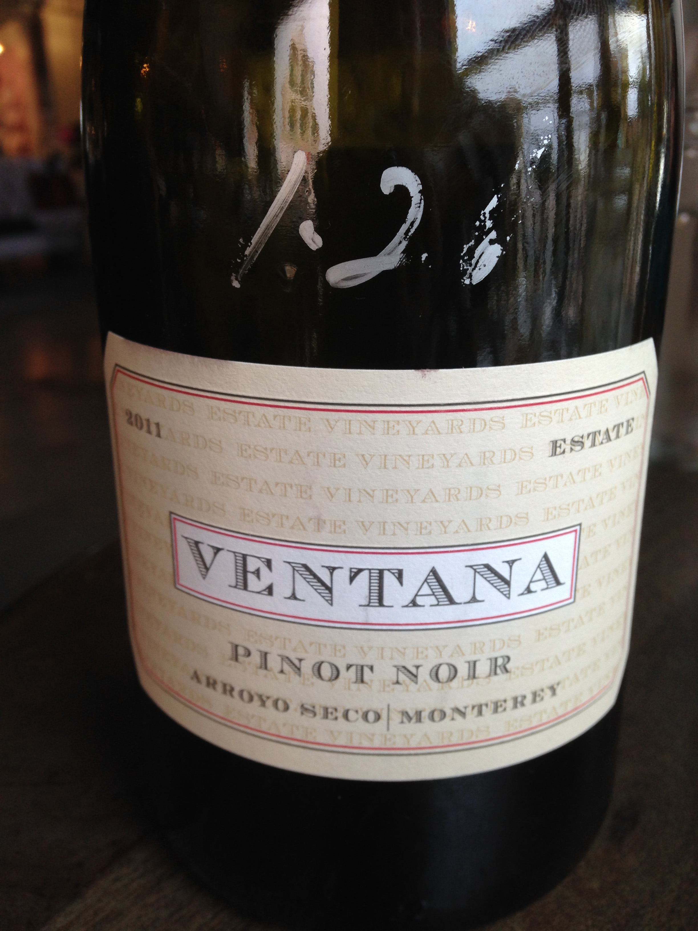 We also had a couple of white wines. I ordered a glass of Schloss Vollrads Estate Riesling Qualitatswein 2012. I did this in honor of our dear friend Oliver of the Winegetter fame, who we would be seeing a couple of weeks later after our trip. This particular Riesling wine was considered “dry” and I found it very refreshing after our walking around. Schloss Vollrads Estate is in the Rheingau region of Germany, and the Rheingau is considered the more “masculine” of wines, as compared to the Mosel wines which are termed “feminine;” this is similar to the concept of Bordeaux and Burgundy in France. While I was enjoying my wine, which I am surprised to say that my Bride enjoyed; she chose a more robust wine for herself. She ordered a glass of Ventana Pinot Noir 2011, which is made in the Arroyo Seco appellation of Monterey. This wine is aged for ten months in French Oak barrels before bottling and offered a good representation of what we expect from a Pinot Noir from the Monterey District. We also drifted back to the time when we had lunch at the Ventana Inn & Spa in Big Sur, not far from Carmel-by-the-Sea. The memories that we have enjoyed from wine, is always wonderful.