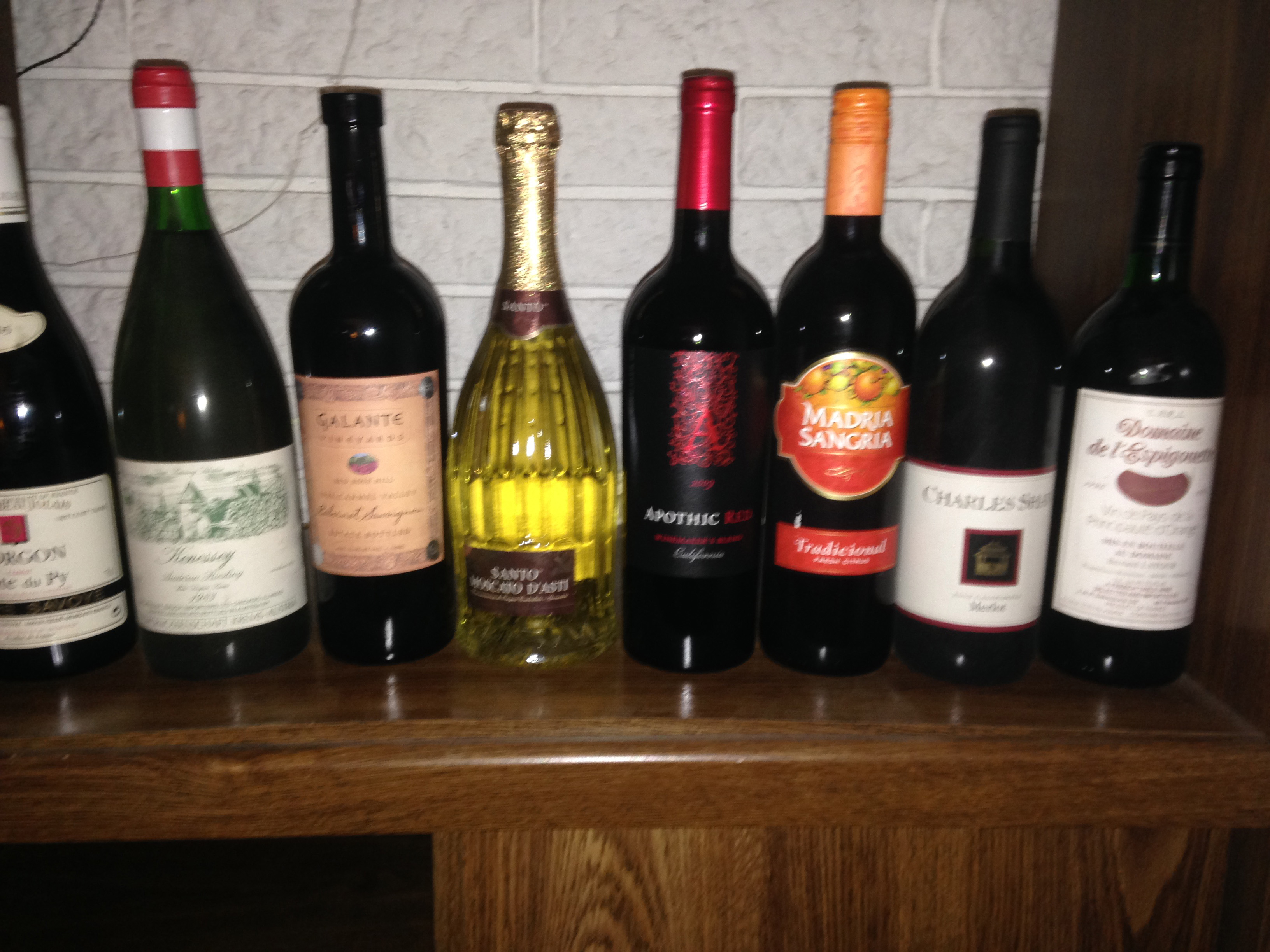 The second batch of wines that I found for this sad tale will continue. A wine by Pierre Savoye of Beaujolais his Morgon “Climat Cote du Puy” 2005, if it was just Beaujolais and especially a Nouveau, I would have my concerns, but I think this wine may make it. The next wine would have been interesting to me, as I have not had too many wines from Austria, but I am not holding my breathe for this bottle of Kenessey Riesling 1983. The next wine I know is from my wine club and I must have brought it up for a party, did not open it and it ended up lost with these other bottles. It is Galante Cabernet Sauvignon Red Rose Hill 1998 from the Carmel Valley AVA by Galante Vineyards and I am betting that this wine makes the cut. The next wine I am sure will be fine, as it must have recently been purchased to regale some of our friends that say our wines are too dry; as it is an Italian Santo Moscato D’Asti DOG Vino Dolce 2011. Then there is another popular wine that is seen in a lot of restaurants around town as it is a safe wine and I am sure that it will be fine as well. Apothic Wines Apothic Red 2009 is a blend of Zinfandel, Syrah and Merlot and while it is not a stellar wine, it will work well with a casual dinner. The next wine is one that my Bride must have bought, as she gets into a taste for this wine, and she probably finished her cycle and forgot about this last bottle, so depending on how old it is, it may still be good; a bottle of Madria Sangria NV of Modesto, California. Then there is a bottle that I am sure was a gift, a bottle of Charles Shaw Merlot 2002 of California, you may know this wine by its nickname “Two Buck Chuck” and I will not give this wine any odds, because of its age and brand. The last bottle is from some table wine that I had bought a case of years ago, and it is Domaine de l’Espigouette 1996. It is a Vin de Pays de la Principaute d’Orange, a term that is no longer used as it has been changed to IGP Vaucluse, this change occurred in 2009. The indicative blend of varietals for this wine would be Cabernet Sauvignon, Merlot, Syrah and Grenache. I would venture to say because of the provenance of this wine and not in the best of storage it may have seen better days. So here is a modern tale to admonish everyone, especially me to make sure that all wines are stored properly, and in the coming articles, I may bring up the winners and losers of this group as I have them boxed separately in the cellar now.