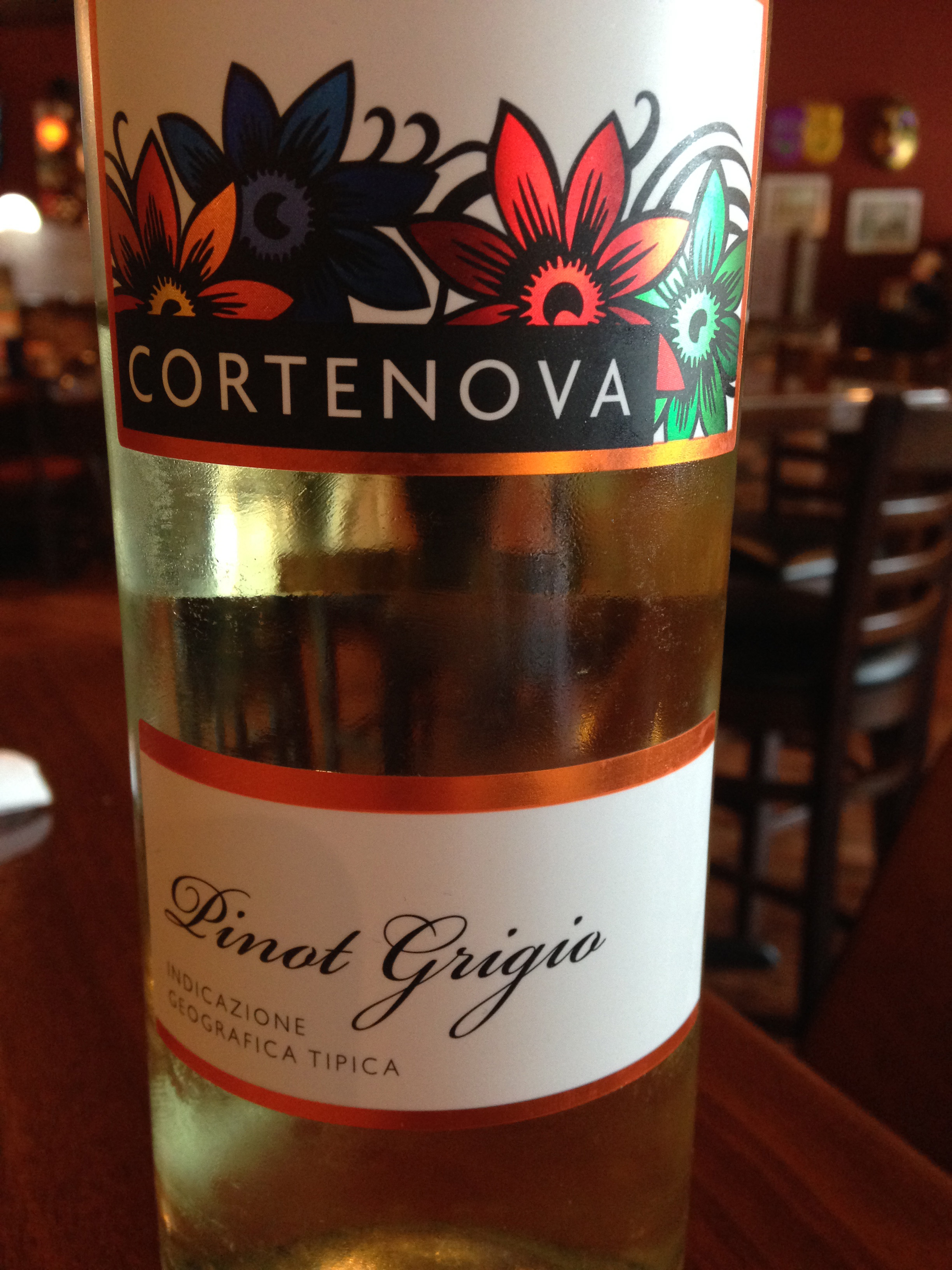 Since it was so hot, as soon as I entered I ordered a glass of Cortenova Pinot Grigio della Venezie IGT 2014. I guess I should mention that the Venezie is not the Venice that one immediately thinks of when they think of Italy, but the area is referred to as Tre Venezie or the Three Venice’s and all wine producers. In fact “della Venezie IGT” is about seventy percent Pinot Grigio, which is how well this varietal has done in the area. I think that I like Pinot Grigio wines more and more, because they tend to be so light and easy to drink and they seem never to clash with my meal. I think that I have been drinking more of it lately, because we have had quite a hot summer and a soft Pinot Grigio that has been chilled just seems to be the right ticket. While I was there, they also offered me a taste of a wine that they are thinking of stocking, and while it was delicious it requires another trip back there to try a full glass of it, to see if I still agree to my initial taste.
