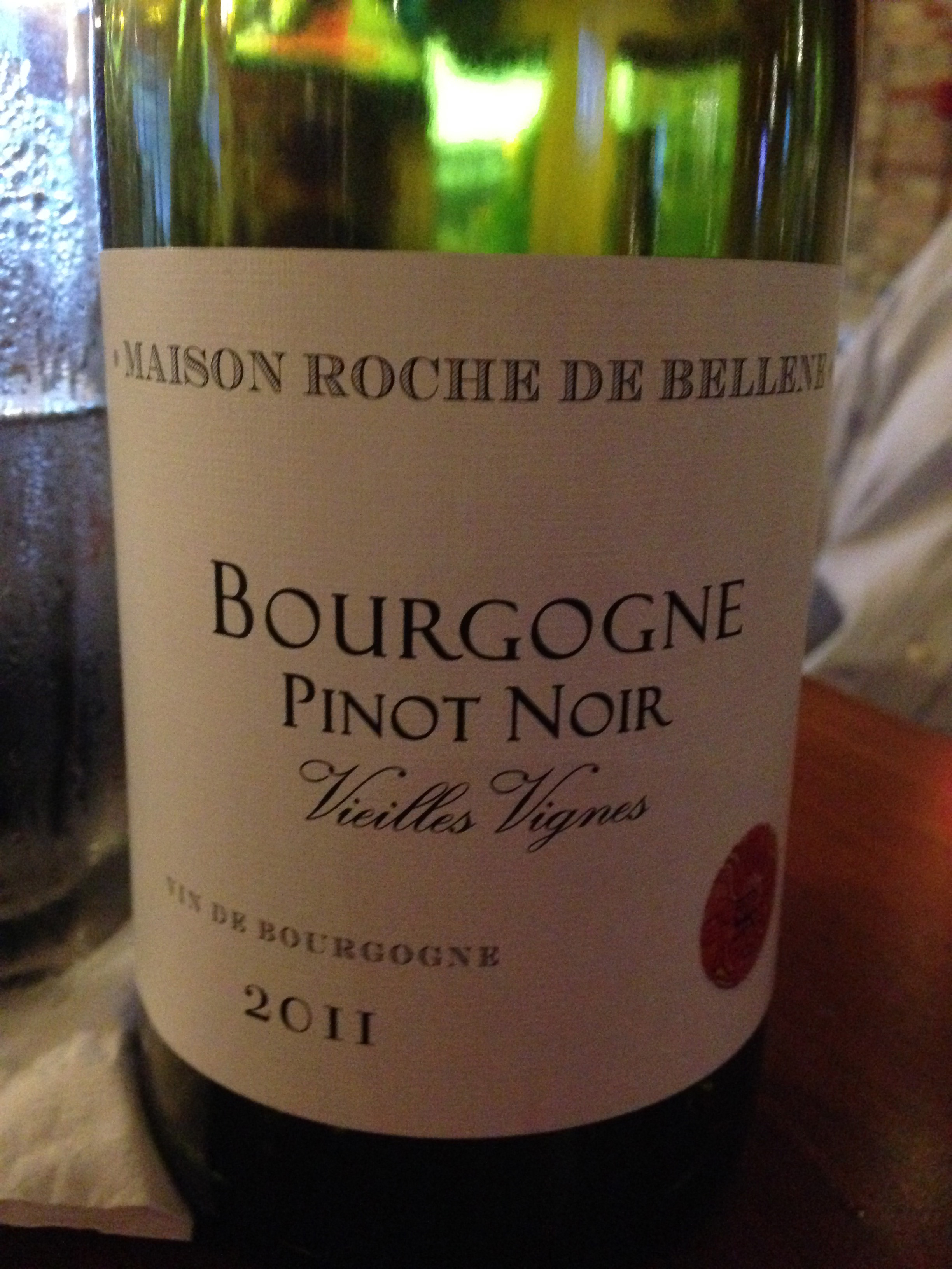 After cocktails, it was easy for me to begin looking at the wine list, as I knew what we were all planning on having for dinner and I had already decided that a Pinot Noir was called for. I was sure that the Gods were going to allow me to find some Pinot Noir wines from which to choose from and I guessed right. I settled on Maison Roche de Bellene Vieilles Vignes Bourgogne Pinot Noir 2011. Maison Roche de Bellene is a new negociant founded in 2009. The name Bellene is from the Gallic God of Sun and Beauty that the city of Beaune’s name is derived from. Maison Roche de Bellene has a business philosophy of acquiring fruit from older vines and making the most of the terroir of Burgundy. The wording on the label of Vieilles Vignes can normally be just a marketing ploy meaning “old vines,” but the fruit was harvested from vines that are fifty-six to eighty-eight years old from plots in both the Cote de Beaune and the Cote de Nuits, hence the appellation of Bourgogne. The wine was aged for fifteen month in barrels unfined and unfiltered which allowed more of the terroir to be part of the wine. This was a simple and enjoyable wine and since there were about 10,000 cases of wine made, it should be fairly easy to be found and the cost was not dear, even in a restaurant. Just a great evening of friends, food, good memories and of course wine and that is what life should be.