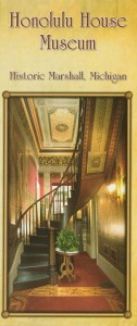 We also did one of the museums, which is the famous Honolulu House. The house was built as a private residence for Judge Abner Pratt who came to Marshall in 1839 and became a successful attorney and ended up serving as chief justice of the Michigan Supreme Court, and then he was appointed as U.S. consul to the Sandwich Islands in 1857, which is now called Hawaii. He had to leave the islands because of his wife’s poor health and he returned to Marshall and built his new home that reflected all that he came to enjoy about his life on the islands. This home has to be seen to truly appreciate his vision and the splendor. The house has had a few owners and some of the wall paintings have been changed, but they are magnificent, at first I thought it was wallpaper, but the walls and ceilings are hand-painted and they not only have texture in the paints, but they have a three-dimensional quality. The guided tour we had lasted about an hour and our guide was just perfect with all of his knowledge of the house and of the town and of its history.