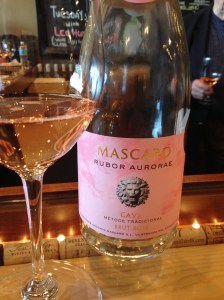 Of the six wines offered that evening, I will start off discussing the first two wines that started off the tasting. The first wine was a bubbly, but not a Champagne. The wine featured was made by Montserrat Mascaro from Catalonia, Spain and was made in the Methode Tradicional, the Spanish spelling of Methode Traditional, the approved wording in the EEC for the old expression Methode Champenoise. As you may have surmised we had a Cava wine, but this was a pink Cava. The Mascaro Rubor Aurorae Cava Brut NV was a refreshing sparkler made entirely from the Grenache grape, a mainstay in Spain. Most Cava wines are not made from Grenache and this wine was aged for twelve months, and it not only offered a delightful soft pink color, but very tiny little bubbles, which one looks for in a good sparkling wine.