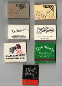 I was trying to find some items that would remind of wine stories, and as I was going through a box of matchbooks, I found a recurring theme, that is kind of sad. Some people probably think it is silly that we have all of these relics of days gone by, but I enjoy looking at them and remember with a smile on my face the meals and the wine. Alas, my Bride, does not really recall many of the places that we have gone to, until she reads my article sometimes. I found some matchbooks that were not mine, so I know that they were from my Bride, before we met.