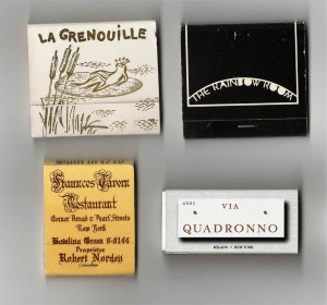 I amassed some of them that were from Manhattan and it speaks volumes about an institution that is still in business back in the days when matchbooks were a common way for a restaurant to advertise. I just long to know what great meals and wines she may have had back then, though I can guarantee that that the meals consisted of seafood and white wine, because until we met, that is what she always dined on. The ones that are still around are like the Rainbow Room in the Rockefeller Center. Though as I think back, I did partially write about her dinner at the Rainbow Room, but it was only a hazy memory of a Chardonnay and a Filet of Sole. Fraunces Tavern on Pearl and Broad Street where General Washington bid farewell to his troops. Via Quadronno famed for their Italian food on the Upper Eastside at 73’rd and Madison. Le Grenouille that famed French restaurant known for their cuisine and their floral arrangements on 52’nd Street between Fifth and Madison. Oh, the meals that she must have had without me.