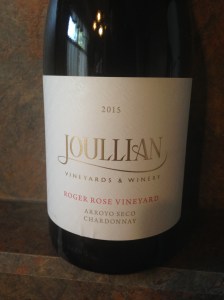 The first bottle that I picked from the package was Joullian Roger Rose Chardonnay 2015. Joullian Vineyards was created by the Joullian and Sias families of Oklahoma City, Oklahoma. I have their 2014 vintage, that I have not tried, so I shall have to try that one first. They use French Oak barrels that have been cured for three years before usage to minimize the oak flavor and they use multiple Burgundy yeast strains for their Chardonnay wines. The wines carry the Arroyo Seco AVA and I believe this is the last year for the Joullian Vineyards control as they have been bought by another company, who pledges to maintain their winemaking techniques. There were one-hundred-seventy-five case produced of this wine and the aging potential is five to six years.