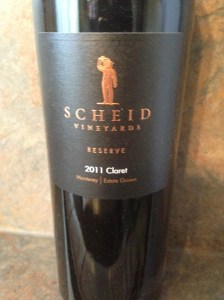 The last wine that I unpacked may be the most interesting. The Scheid Vineyards Reserve Claret 2011 carries a Monterey AVA. This wine is a blend of Cabernet Sauvignon, Petit Verdot, Cabernet Franc, Merlot and Malbec and is source from the Hames Valley Vineyard and the San Lucas Vineyard. Each varietal was aged in a mix of French and American small barrels individually for thirty-four months before blending. After the blending, it was allowed to age an additional twenty-six months in the bottle before release. There were five-hundred-fifty cases produced and the aging potential for this wine is eight to ten years, and from the sound of it, it may even be longer. I think that I have three great wines to look forward to enjoying.