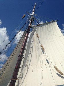Every now and then I guess we become bona fide tourists and while up in the Traverse City area we almost abandoned wine for a three-hour cruise. The whole crew of us boarded the Tall Ship Manitou. The Tall Ship Manitou is a replica of an 1800’s “coasting” cargo schooner similar to those that plied the Great Lakes and the Atlantic Ocean. This ship was built in 1983 in Portsmouth, New Hampshire and was finished by Vermont carpenters in Lake Champlain and eventually sailed to Traverse City. They have a couple of cruises each day and they also offer longer cruises and over-night excursions if one is interested. They also have a smaller sister ship that is usually hired out for private parties. The Tall Ship Manitou can hold fifty-nine passengers and one sits where one can on the deck, as there are no chairs, but one can also tour the galleys and bunk areas in the hold while out on the lake, and they also allow landlubbers to take to the helm, more for photo-ops, and I declined, I can just imagine reading the papers “The Wine Raconteur runs the Manitou aground.”