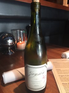The other wine that she gave me a shout out for was Jayson Chardonnay Napa Valley 2014. Jayson is the second label for the very well respected Pahlmeyer wine group. The fruit was harvested not only from the Pahlmeyer Estate, but also from Atlas Peak and the Wayfarer Estate. This Chardonnay wine was also produced using the Sur Lie method and was aged for eleven months in eighty-five percent new French Oak. So, Ms. Yoga is two for two on a couple of fine wines, and we look forward to the next time we see and enjoy her company.
