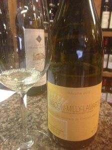 The second wine that I was offered was also a white wine an it was from Les Heritiers du Comte Lafon which was founded in 1999 and they are biodynamic and organic from single sites and they shun the normal Maconnais way of high volume, industrial farming. The Lafon Macon-Milly-Lamartine 2015 was charming. The white wines that carry the Macon-Milly-Lamartine designation must be Chardonnay, otherwise it would carry the lower designation of Macon. This wine is aged for seven to eight months on the lees in larger, older oaken barrels and then gently racked before bottling. The wine had a terroir-driven nose and taste of limestone to me and a nice finish. The kind of Chardonnay that I really enjoy. The afternoon was starting off properly.