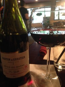 They have a limited wine list, but a rather complete bar. They use, along with most other places we have been to for brunch William Wycliff Winery “California Champagne” Brut NV with the convenient screw cap. This wine is made using the Charmat Method, and hence it is very affordable and easy for most restaurants. The winery is under the umbrella of the Gallo Winery Group, which probably explains how they were grandfathered in with “California Champagne.” I digressed a bit, but we tried to order two different bottles for the table and they were sold out, so we opted for a third try with success, and the restaurant comped us on our dessert, because of this problem. We had an old favorite negocient and a region of mine that evening. We had Barton and Gestier Cotes du Rhone Les Galets 2016. B & G as they are usually referred to is the oldest wine house in Bordeaux and they oversee and bottle wines from most regions of France. This particular wine was a blend of Syrah, Grenache and Carignan and aged in French Oak. While B & G is not stellar, they have been dependable and reliable since I started drinking wines several decades ago. It was a wonderful dinner, the wine worked well, the company excellent and I might add that Ms. Yoga skipped town the next day and ignored the invoice again. Until her next appearance.