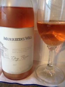 The third wine of the evening piqued my Bride’s thirst immediately as she has in the last couple of years taken a real interest in the different Rosé wines that we have encountered. We were trying the Murrieta’s Well Dry Rosé 2017. Here is a wine that has Grenache and Counoise grown in their Hayes Vineyard and the Mourvedre was grown in their Raboli Vineyard. The grape clusters were handpicked in the morning hours and they used gentle whole cluster pressing. Each varietal was cold-fermented separately and aged for about one month. After the month the wines were blended and aged for an additional two months in Stainless Steel. This wine produced two-thousand and one cases and they recommend that it will be best to be consumed by 2019. My first thoughts on this wine was the soft Salmon shade with a delicate soft nose of soft fruits. A good acid balance with harmonious blend of the fruit. A shorter aftertaste with a little bite. My Bride described this wine as a translucent Salmon color with a light nose. A very subtle, not overpowering wine that she liked a lot. We were a little disheartened when one of the other bloggers pointed out that this wine was now sold out at the winery, but we were glad that we had a chance to enjoy this bottle. As we kept tasting the wine the terroir became more apparent and I think that it added to the appeal of the enjoyable aftertaste. Years ago, when I first started learning about wine, I was told to count after drinking the wine, the longer the count the better the aftertaste, as some wine dissipate quickly. My next article will cover the last two wines of the night.