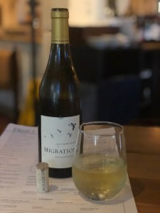 She sent me a photo of the Migration Chardonnay 2015, and when we were there Migration was Napa, and now this wine is from the Russian River Valley in Sonoma County, but then Duckhorn is no longer a family operated winery either.  The Russian River Valley is in the heart of Sonoma County and it is known for its long cool ripening season that is perfect for growing Pinot Noir and Chardonnay.  This wine is pure Chardonnay and it is aged for ten months.  The aging is done in two ways, ninety percent is aged in French Oak, of which three percent is new and ten percent is aged in Stainless Steel, and then blended together.  She did not send me any tasting notes, but I am sure it was a delightful wine.  Who knows, she might even think of sending me a photo of the Duckhorn duck horn, and as a side note, I probably may have the largest cache of Duckhorn Vermouth, which they were making back then, and my customer was not fond of, so he would give me all of his Vermouth that he would receive, and he was also very generous and gave me a bottle of the Three Palm as well.   If Ms. Yoga can get nostalgic, well I guess than so can I.