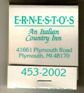 My dinner club that I write about often, just met for the last time at a venue that we really have enjoyed. The Courthouse Grille in Plymouth will soon be part of the history of this quaint city, as it is being torn down to make room for more housing, and I am not sure if it will be homes, condos or apartments. I first discovered the restaurant when it was The Hillside, and the owner was a big game hunter, and he used to periodically serve big game there, which probably today he would not be allowed to do. Alas I was in high school back then, and I did not save a matchbook from those days, but I did see a matchbook from there in the Plymouth Historical Museum. I next remember it as being Ernesto’s a full-blown white tablecloth Italian restaurant; and on the backside of the restaurant was a sit-down pizzeria called Ernie’s. There was a couple of people that attempted to take over the restaurant, but could not maintain the quality and “Ernie” had to take it over again, but because the name was besmirched, he renamed it The Courthouse Grille and started serving more of a mixed menu, but still with some special Italian dishes that he was noted for.