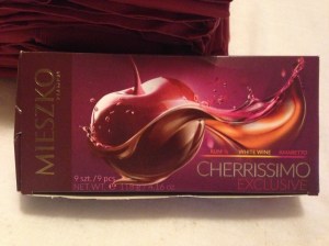 When I was a boy, my Mother used to receive a box of homemade marzipan hand dipped in chocolate from her Tante in Milwaukee for Christmas. To this day, I have never encountered a marzipan candy that was as rich and moist as the candy that we used to get, and that my Mother would dole out very sparingly, as she too looked forward to this package. Alas this memory ended, because my Mother passed away before a couple of weeks before my fifteenth Christmas. Later on, I remember the local confectionary/ice cream shop in the neighborhood where they made everything from scratch, and I used to watch their little conveyor system that they had which kind of looked like an Erector Set on mild steroids. I mention them, because every Christmas season they would have a wink, wink offering from the back room only of liquor filled chocolates that they made, they had a set price for a pound box, but they also required the customer to furnish a fifth of the liquor that they wanted used. That company is long gone, but I do know that one of the restaurants in town actually bought their equipment, especially the ice cream stuff and the recipes, and the ice cream is still being produced. All of this rambling on about Christmas and chocolate is because I received a box of candy for Christmas, and everyone complains that I am extremely difficult to shop for. I received a box of Mieszko Cherrissimo Exclusive manufactured in Poland and it contains Chocolate-covered cherries surrounded by either rum, white wine, or Amaretto. The box alone had an old-world smell and aroma, and so far, I have tried one of the rums, and my Bride tried one of the white wines.