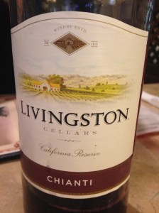 I being the yokel that I am at times, asked for the wine list, and our waitress pointed to a small plastic stand on the table that listed I think five wines and three were the common catering hall type of wines, which makes sense, because Corsi’s also has catering halls from day one, and the signage that was up that evening giving directions, looked like they had three different parties going on.  My Bride asked me what Fortissimo was, and all I could think of was the rows and rows of gallon jugs of Fortissimo that would line the floors and shelves of the old Italian markets of my youth, the wine that always reminded me of the “Dago Red” wine that we used to get as gifts from some of my Father’s friends.  Fortissimo is still made by CK Mondavi Family Vineyards, but I decided to order “Chianti.”  I asked to see the bottle, as they sell the wine by the glass or by carafe, also shades of the old days, with those small wine glasses that I am surprised that are still being made, where they fill the wine up to the rim of the glass.  The Livingston Cellars California Reserve Chianti NV was the wine, and the winery was established in 1933 in Modesto, California.  I was surprised that the wine could be labeled as Chianti, but maybe they have been grandfathered in, just like there are still a couple of California Champagnes.  The grapes used for this wine are probably only known to the winemaker, or maybe not, because nowhere could I find what this Chianti was made of.  You know what, it doesn’t matter, it worked with the ambience of the moment, it was fun, and neither of us complained of heartburn, even with the addition of the cracked red pepper flakes.